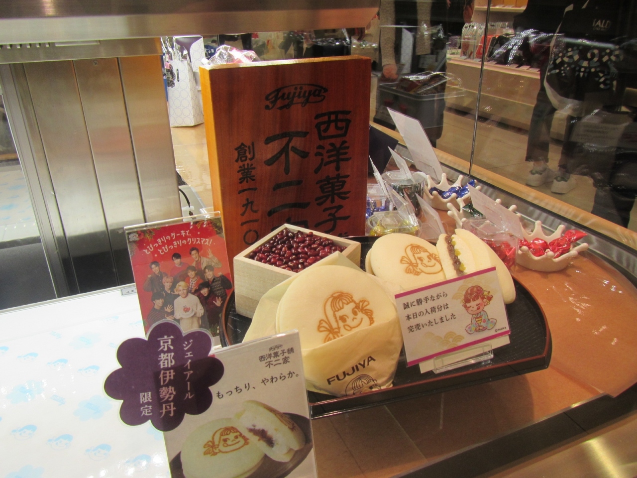 お土産街を歩くと、ちょくちょく”京都伊勢丹限定”という品を目にしますが、ここでの限定品なら、不二家の”みるきぃどらやき”を入手したいところです。
