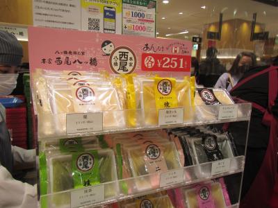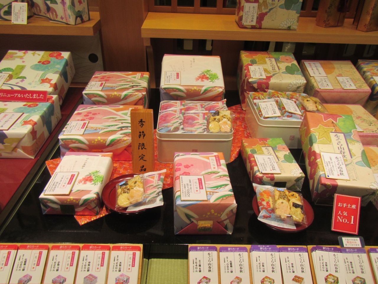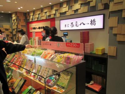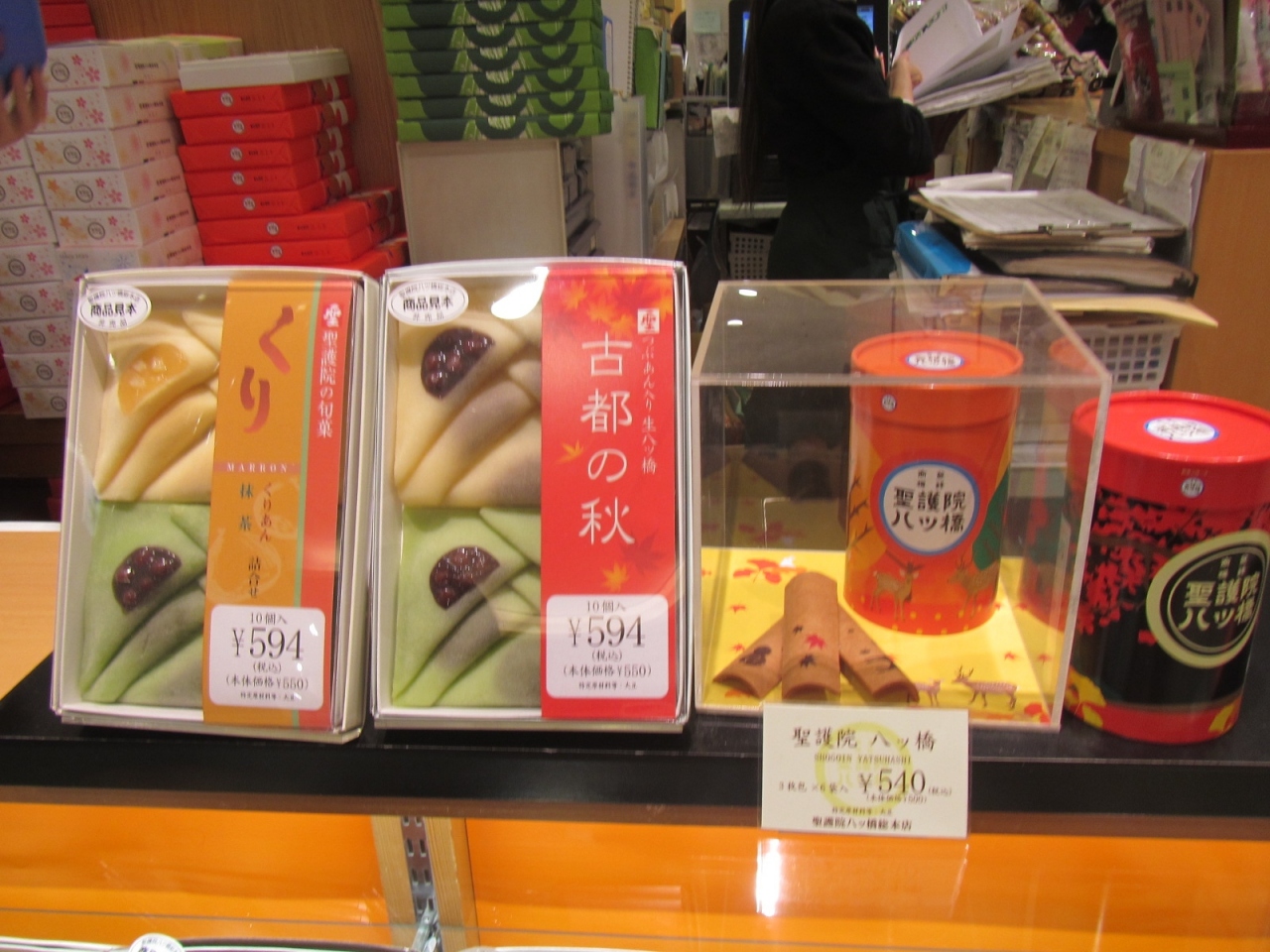 西尾八つ橋では250円くらいで様々な味の生八つ橋が楽しめる小パッケージのものを置いていて、他ではにわかに見かけない”焼きいも”や各種フルーツ味のものありました。- 旅行時期