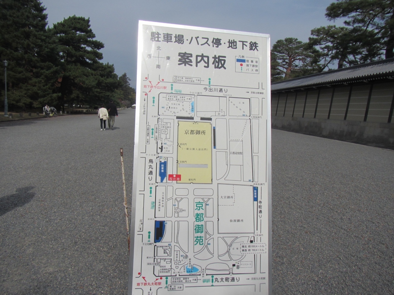 京都御所が目的で訪れましたが、昔の公家の邸宅が立ち並んでいた東西約700m、南北1300m弱もある広大な敷地で、御所までの移動だけでも時間がかかりました。
