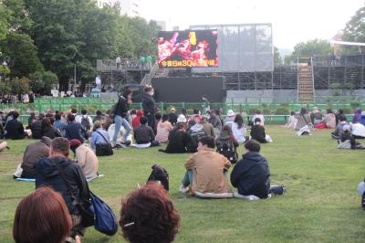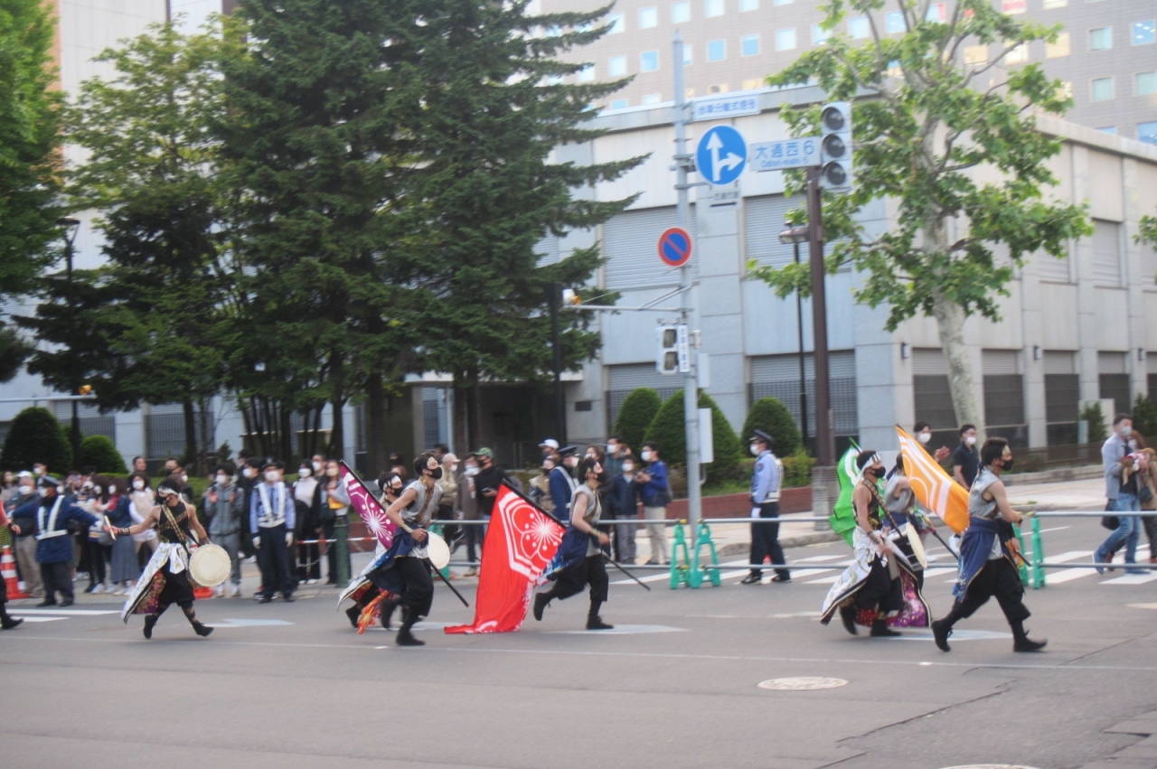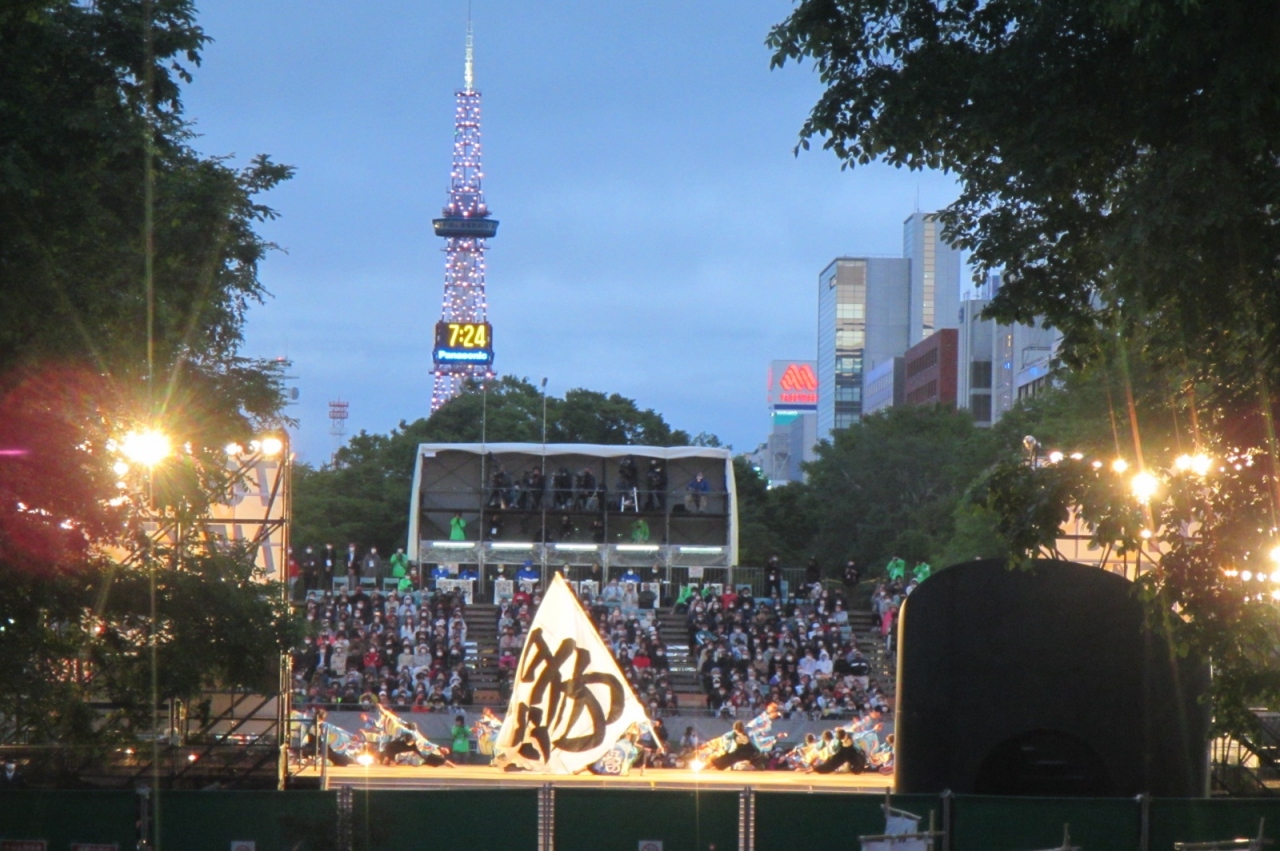 大通会場では、公園内や通りに特設会場が設けられましたが、会場の周りは幕が張られ、外からはなかなか見えにくくなっていたり、もしくは会場横で立ち止まったりビデオ撮影などできないように警備がなされていたりしていて、無料ではなかなか観ることができないようになっていました。