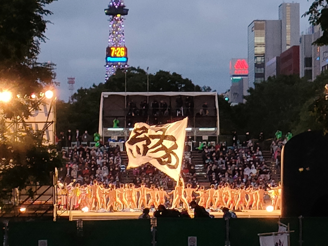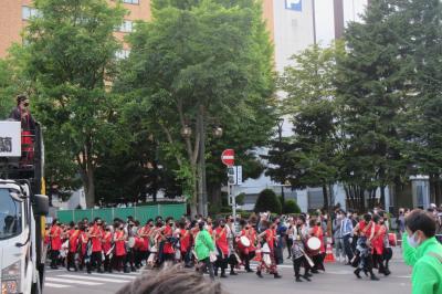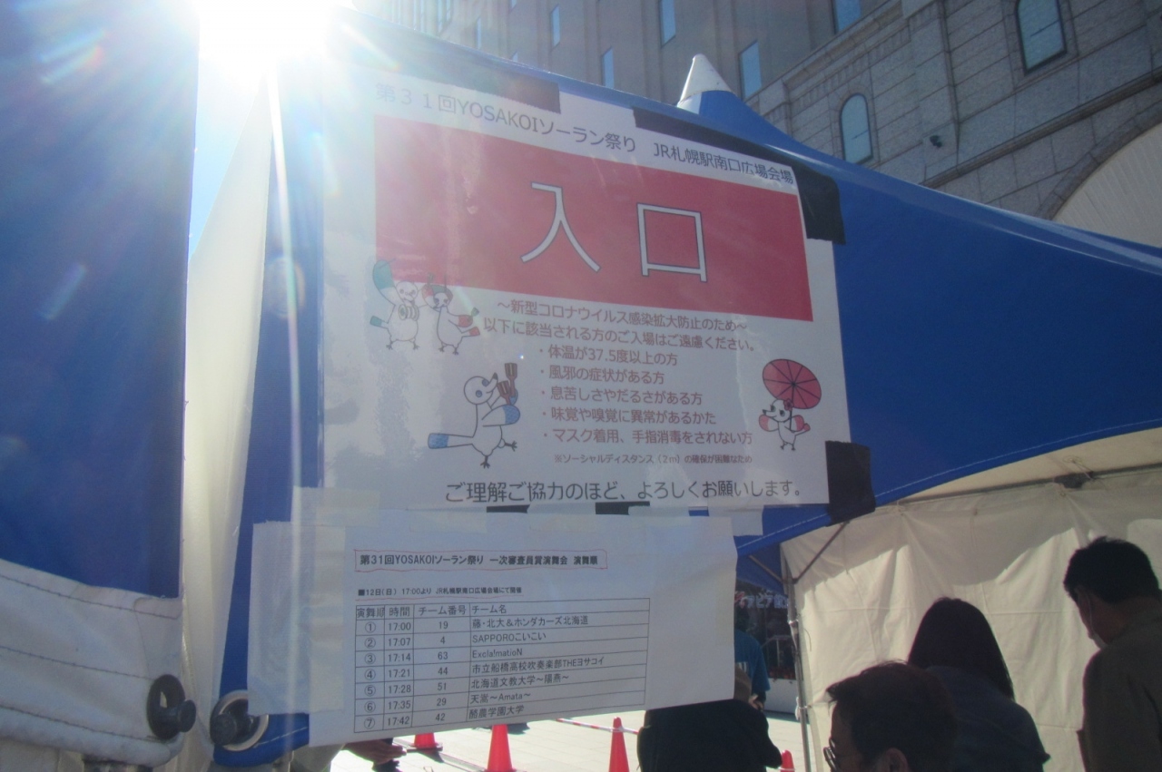 主会場は大通公園の方ですが、大通公園の方は幕が張られたり、誘導警備が厳しかったりして、お金を払わないと、なかなか満足に観覧することができなかったのに対し、南口広場の方はタダで観ることができました。