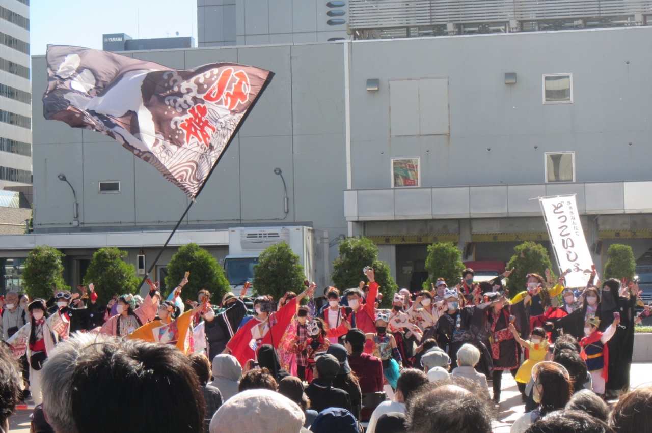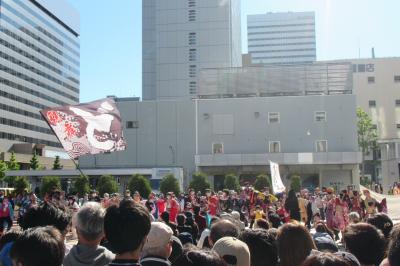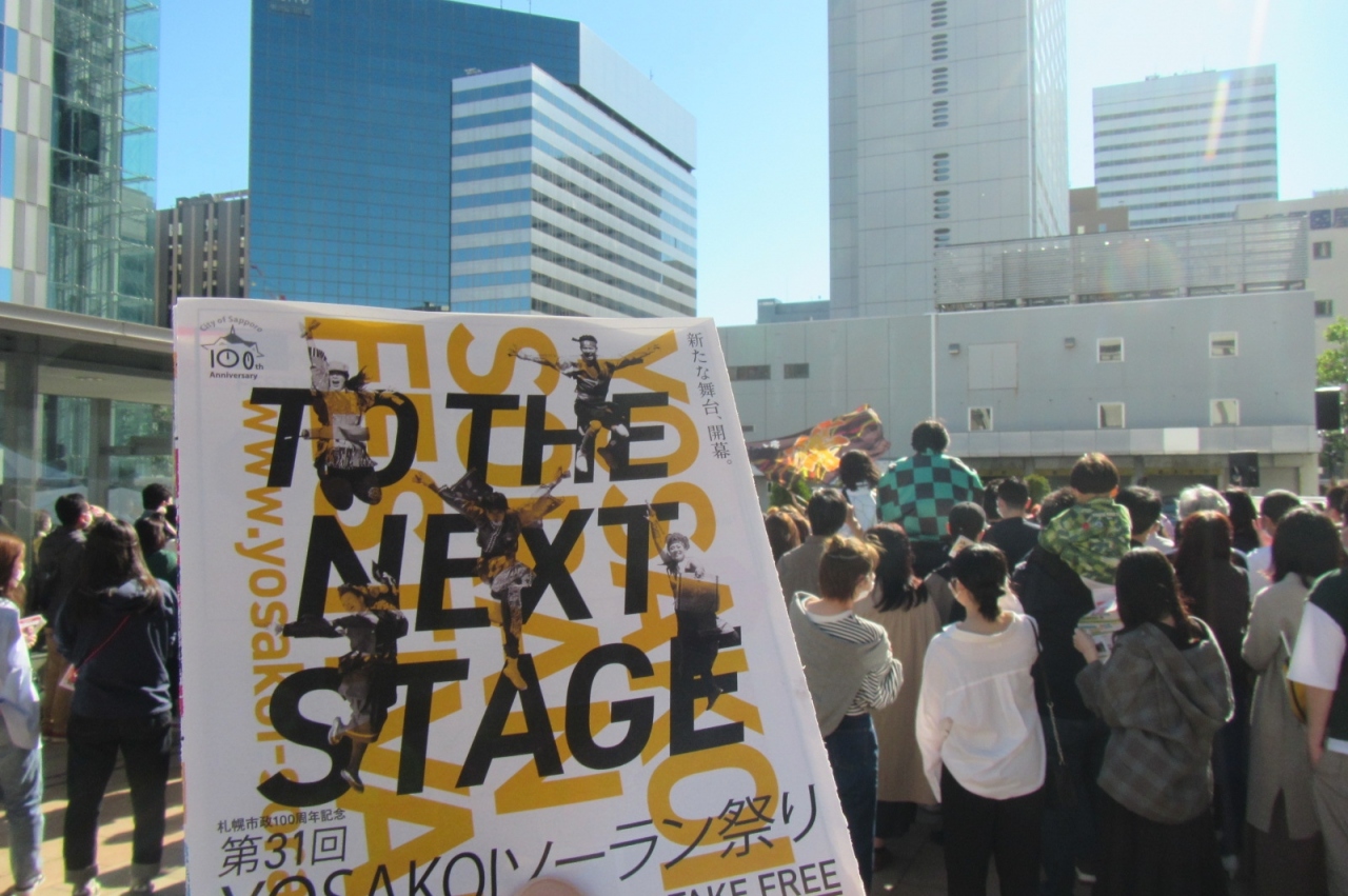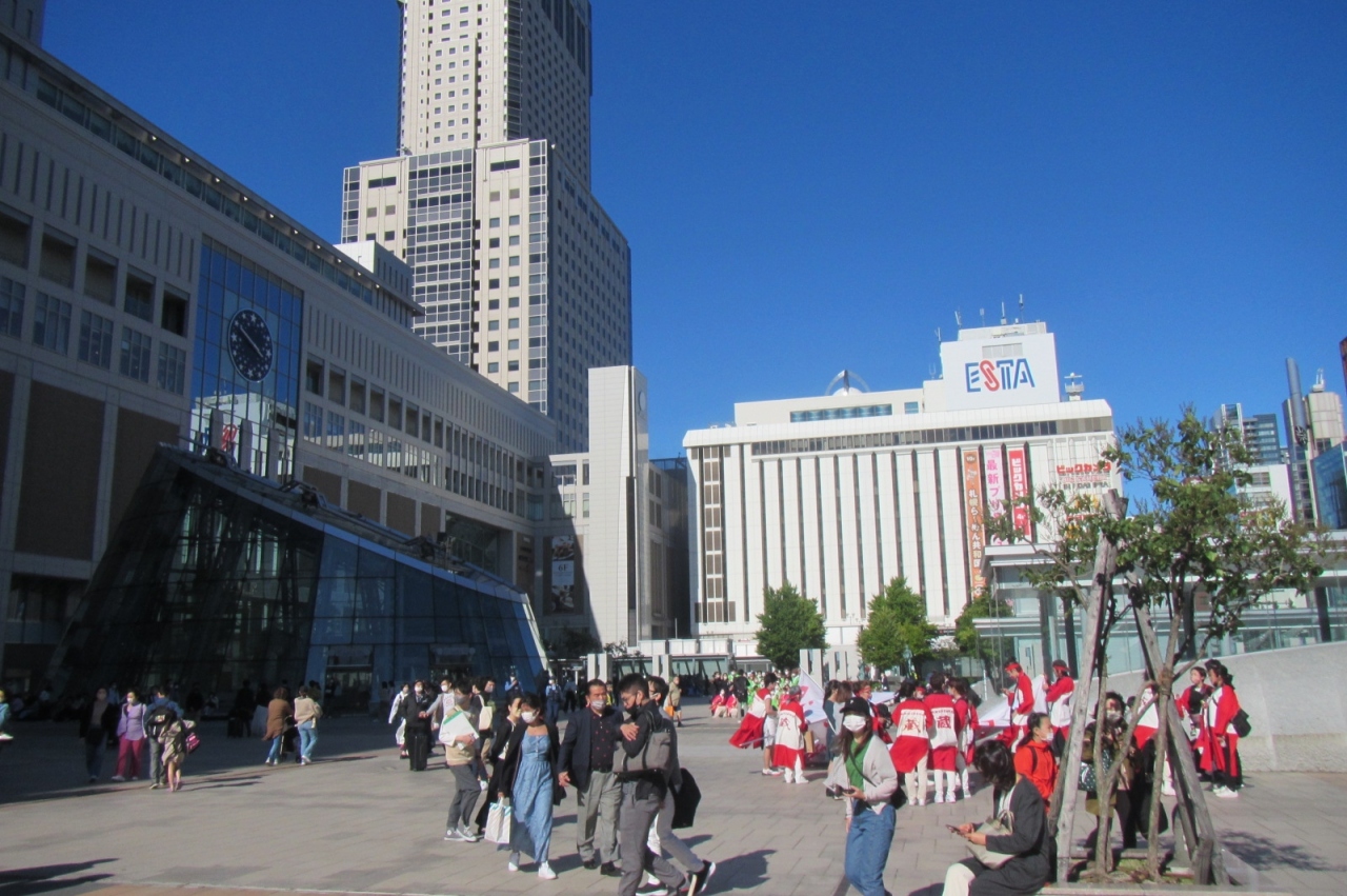 2022年はYOSAKOIソーランが実開催され、札幌駅南口広場でも演舞が行われていました。