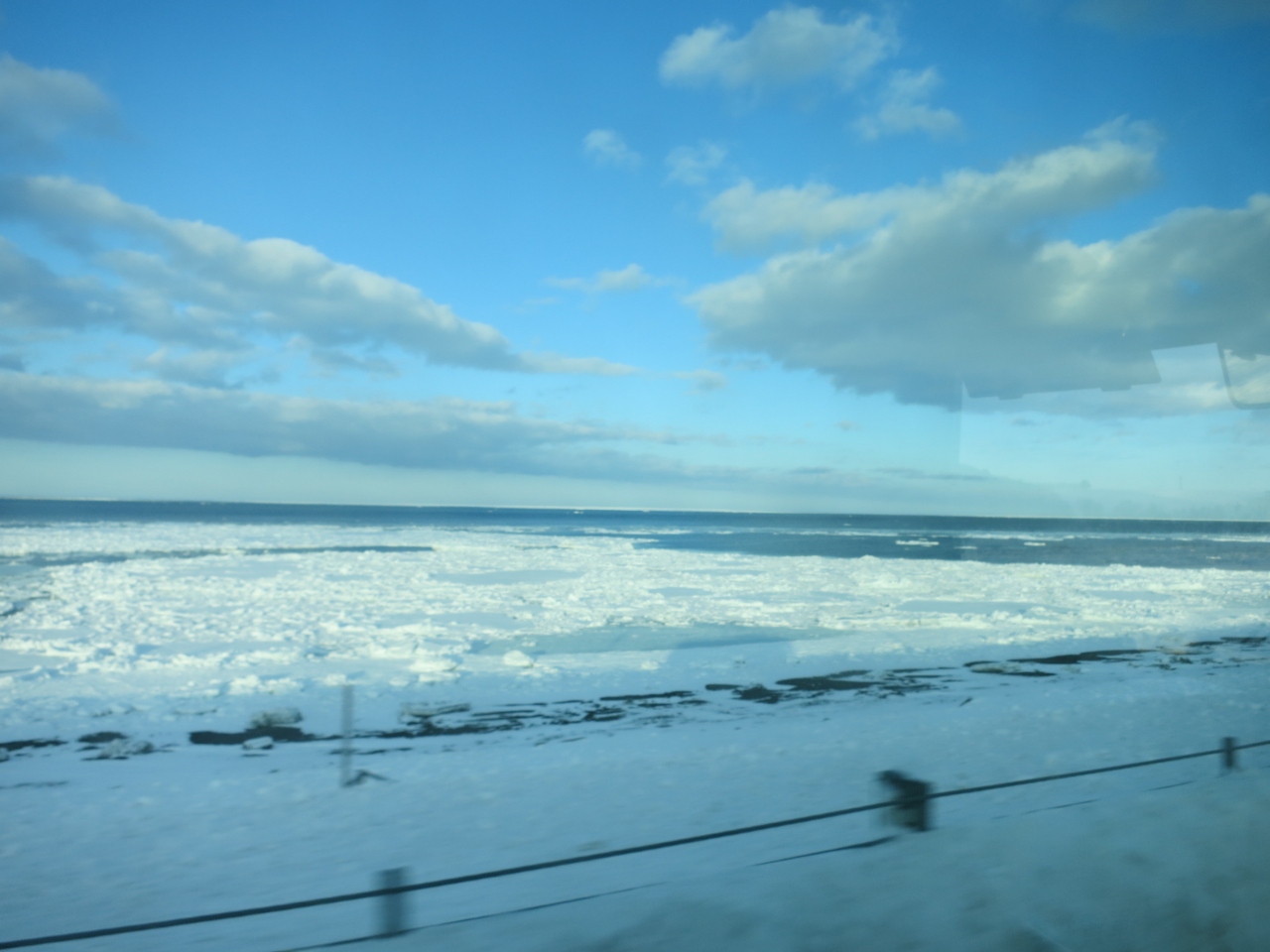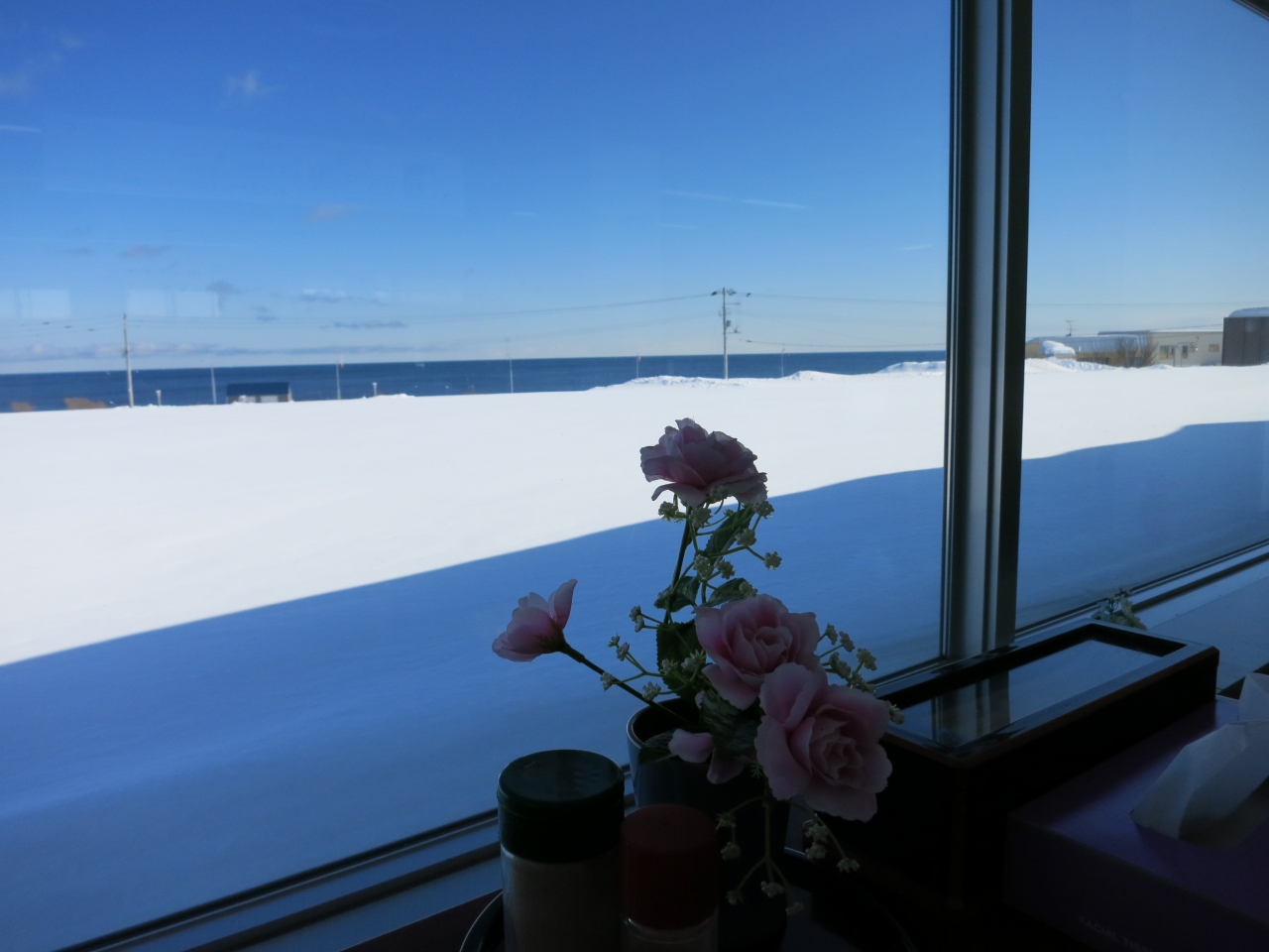 観光バスがいない時は人もまばらで、よく晴れた青空の下、白い雪の向こう見える青いオホーツク海を眺めながらの食事は、カレーの隠れたスパイスとなって、一層その味を引き立たせてくれました。
