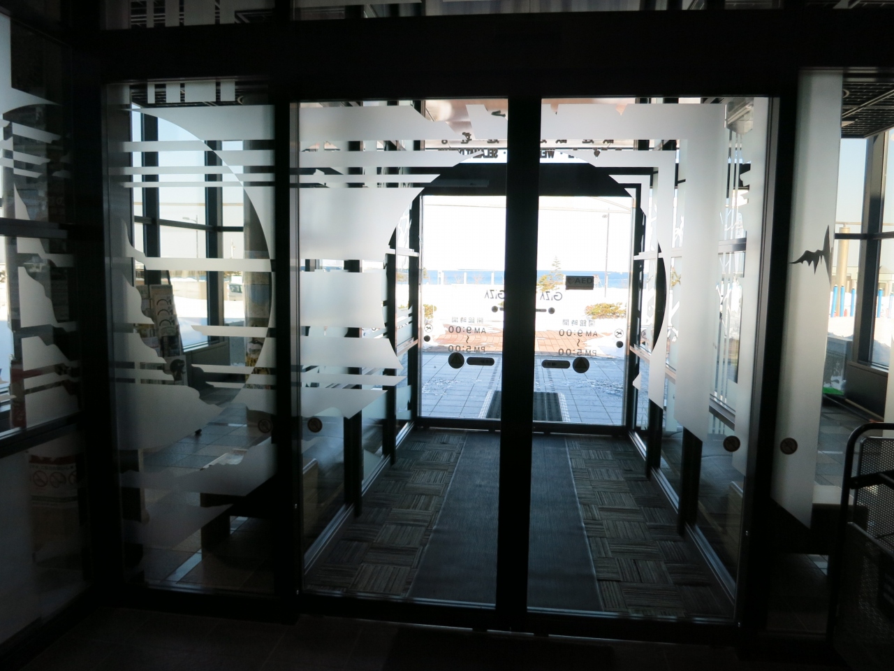 紋別のバスターミナルなどがある中心部からは2km以上離れていて、流氷観光船ガリンコ号の乗り場のある辺りよりも先にあります。流氷科学センターGIZAが併設されていて、入口を入って左がGIZA、右が道の駅の売店・カフェなどです。
