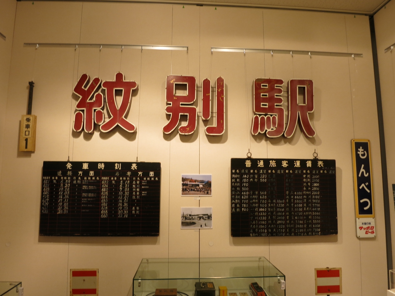 バスターミナルとともに旧名寄本線、紋別駅の跡地に建っており、店の前に紋別駅の駅名板がありました。