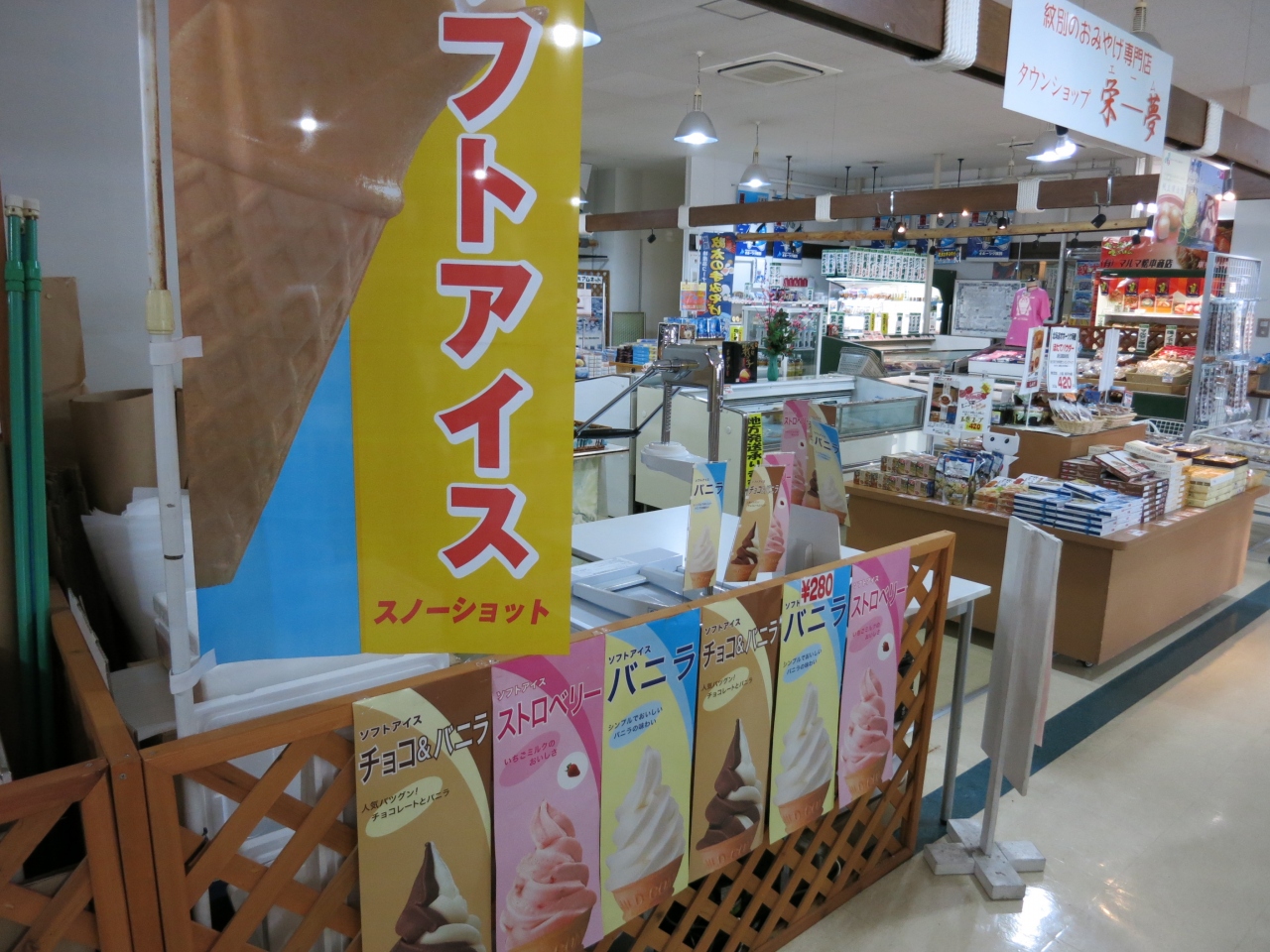 紋別のお菓子などのお土産、ストラップなどのアクセサリー類が販売されています。また、ここでは紋別のご当地メニュー、ホワイトカレー(\850)というのが食べられます(他にもプリンスホテルやホテルオホーツクパレスなど何店かで食べられる)。ただ、贅沢シーフードカレー(\850)というのも美味しそうでした。なお、杜のソフトアイス(\300円)やバニラ、メロン、ハスカップなどの各種の味があるおこっぺソフト(¥250円)も気になりました。