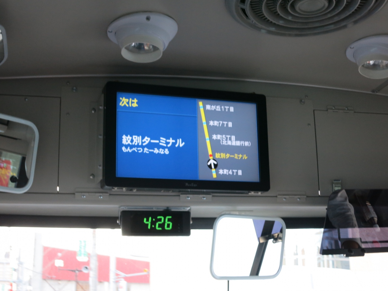 紋別市内のほか、紋別と雄武、遠軽、滝上などを結ぶ郊外線、そして冬期(1/25~3/3〔2014年〕)は、流氷ガリンコ号の発着する海洋交流館前までのシャトルバス(\200円)を運行しています。名寄行きは名士バスが運行しているようです。