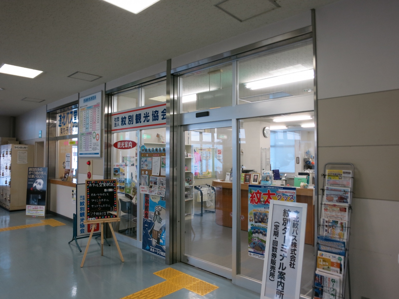 起点は、紋別高校などのものもありますが、いずれも紋別バスターミナルを通り、札幌への高速バス(中央バス)なども出ているので、ここを拠点に移動するとよいと思います。バスターミナルには待合室や観光協会(案内所)、旅行事務所などがあるほか、目の前にはスーパーなども入った道の駅(氷紋の駅)もあります。
