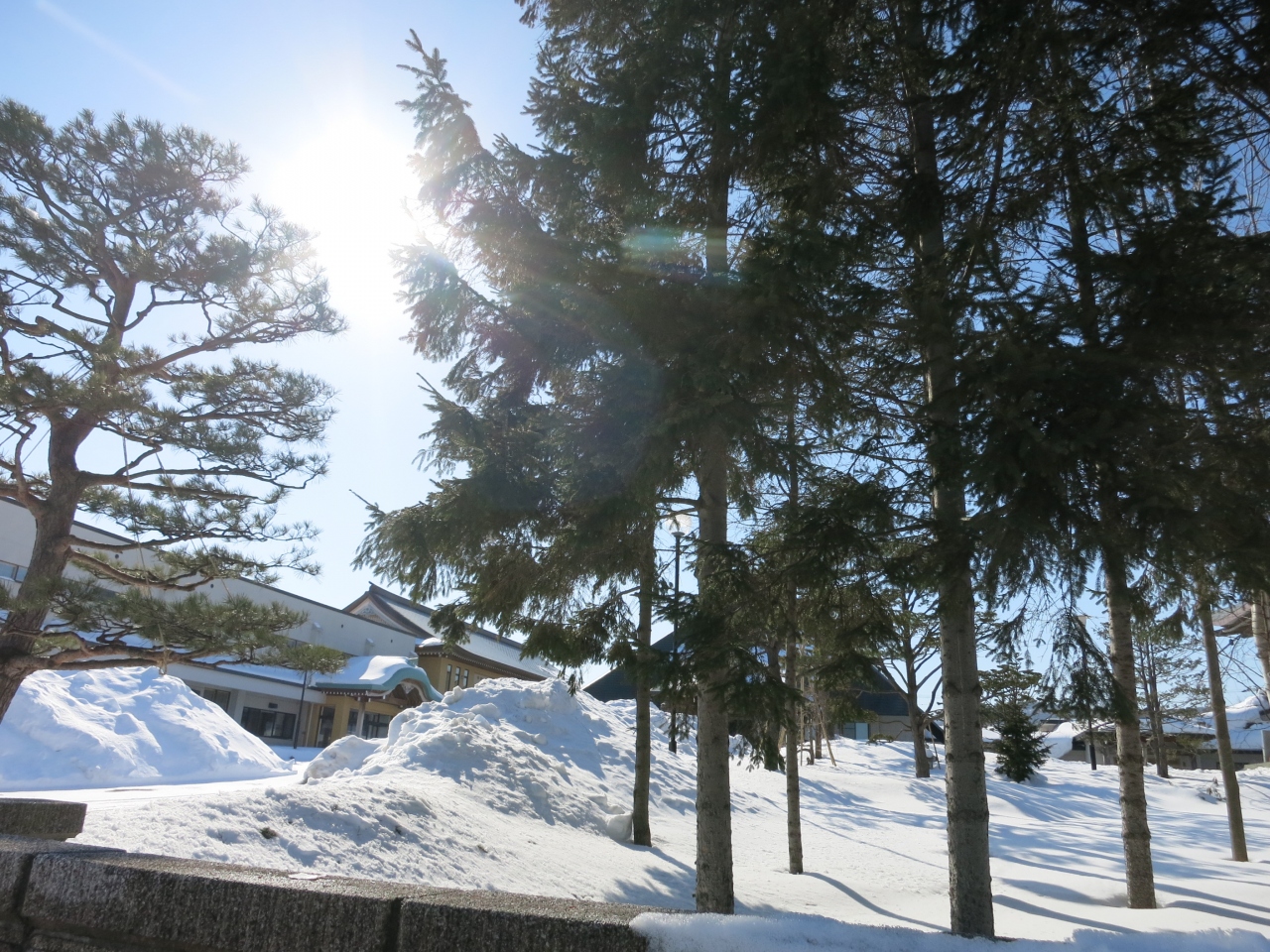 三笠山の麓、枝幸の街ではバイパスとなっている国道238号線沿いにあり、三笠山スキー場に隣接していることから、冬場は地元?のスキー客もいました。枝幸バスターミナルからは1kmほど。ターミナルの横、スーパー西条との間の道を、まっすぐ南西に向かって進み、北幸公園の北の縁を行き、国道238号線にぶつかったところです。