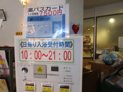ホテルには温泉も付いています。日帰り温泉(10時~21時)もやっていて、フロントに\500円(大人)の券売機がありました。なお、温泉は10時~25時、5時~8時で、宿泊客は日帰り以外のすいている時間帯に行くと良いかもしれません。日帰り客も使える休憩室もありました。