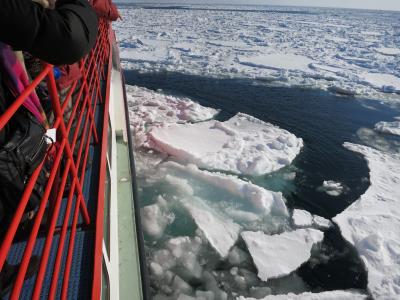 網走のおーろら号に比べ、1階から船の前の方が見えるのが良かったです。訪れた時は、天気にも恵まれ、青空の下、真っ白な流氷原を見渡すことができました。春に近くなると、北海道では青空になり晴れる日も出てきます。ただ、天気図をみると春の移動性の高気圧に覆われ、南風が吹くことも。天気と流氷のバランスが難しいです。- 旅行時期