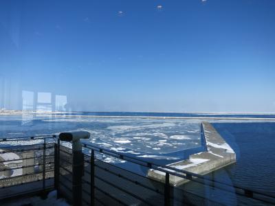 海上約40mからの眺めが素晴しいです。360°一面ガラス張りのパノラマビューの回廊です。外のテラスに出られる場所もあり、オホーツク海の洋上の風を感じながら流氷の海を眺められます。訪れた時は、流氷はやや沖の方に引いていましたが、春の日差しを感じる青空の下、真っ青な海と、雪や氷の白の世界を堪能することができました。