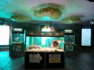 地下1階には、クリオネの水槽があり、たくさんのクリオネたちが泳ぎ回っている様子を間近で見ることができました(他の混んでいる水族館と異なりゆっくり眺められたのも良かった)。他に、紋別近海の魚たちが泳ぐ水槽が並び、人に慣れたひょうきんな“ふさぎんぽ”などがおもしろかったですが、ホヤやホッカイシマエビやエイなどのありきたりな展示もあり、水族館に比べると全体的には素朴な印象でした。また、ドクターフィッシュなどの体験コーナーもありました。