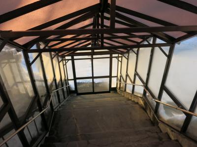 お寺の階段にシェルターが付いていて、雪の積もった冬でも参拝しやすくなっています。