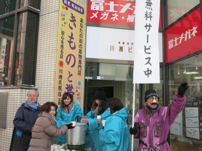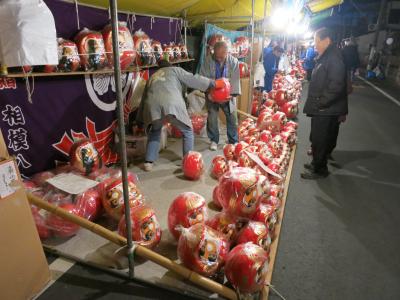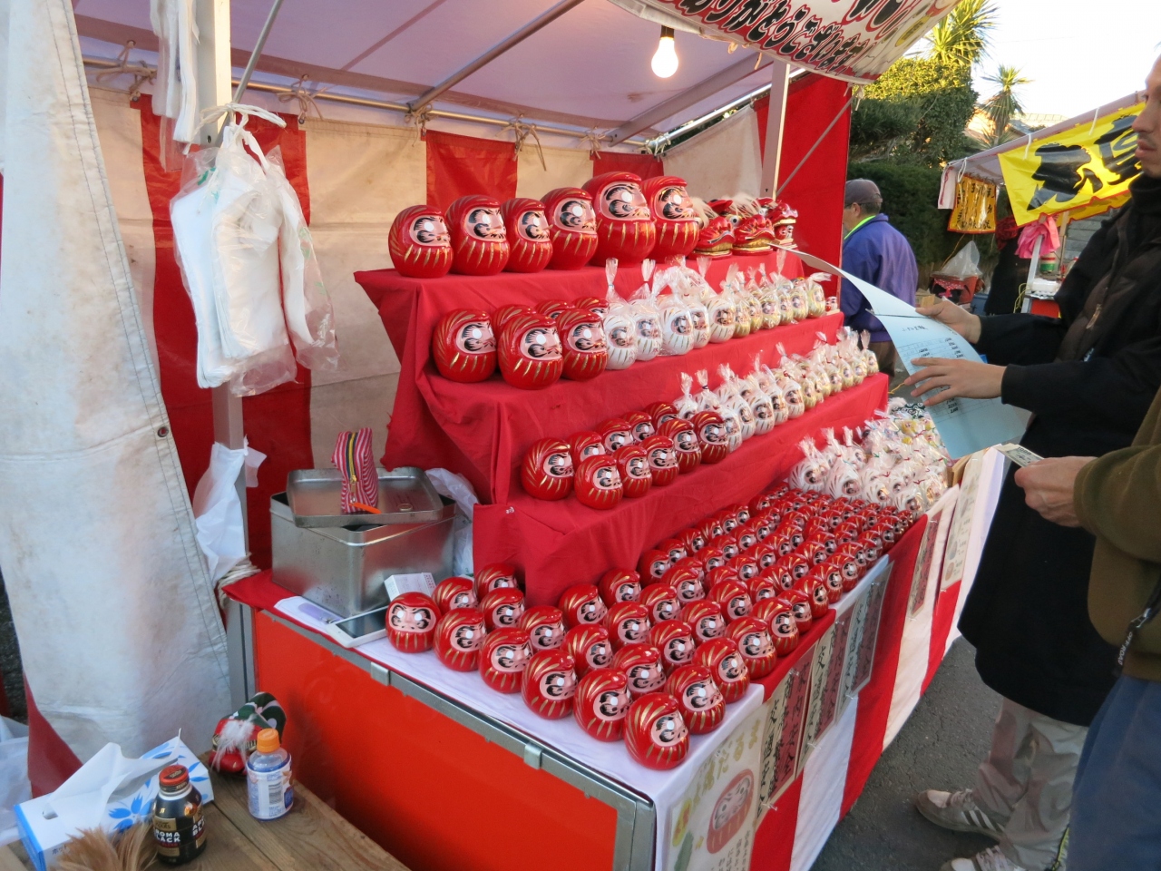 年の瀬の街中に、だるまや正月の注連飾りなどを売る市が立ちます。毎年決まった12月28日。JR相模線の寒川駅の南口を出て少しだけ西にずれ(踏み切りまでは行かない)、そこから南方向へ伸びる道を300mほど行ったところです。道を一部通行止めにして、数軒の露店が並びます。