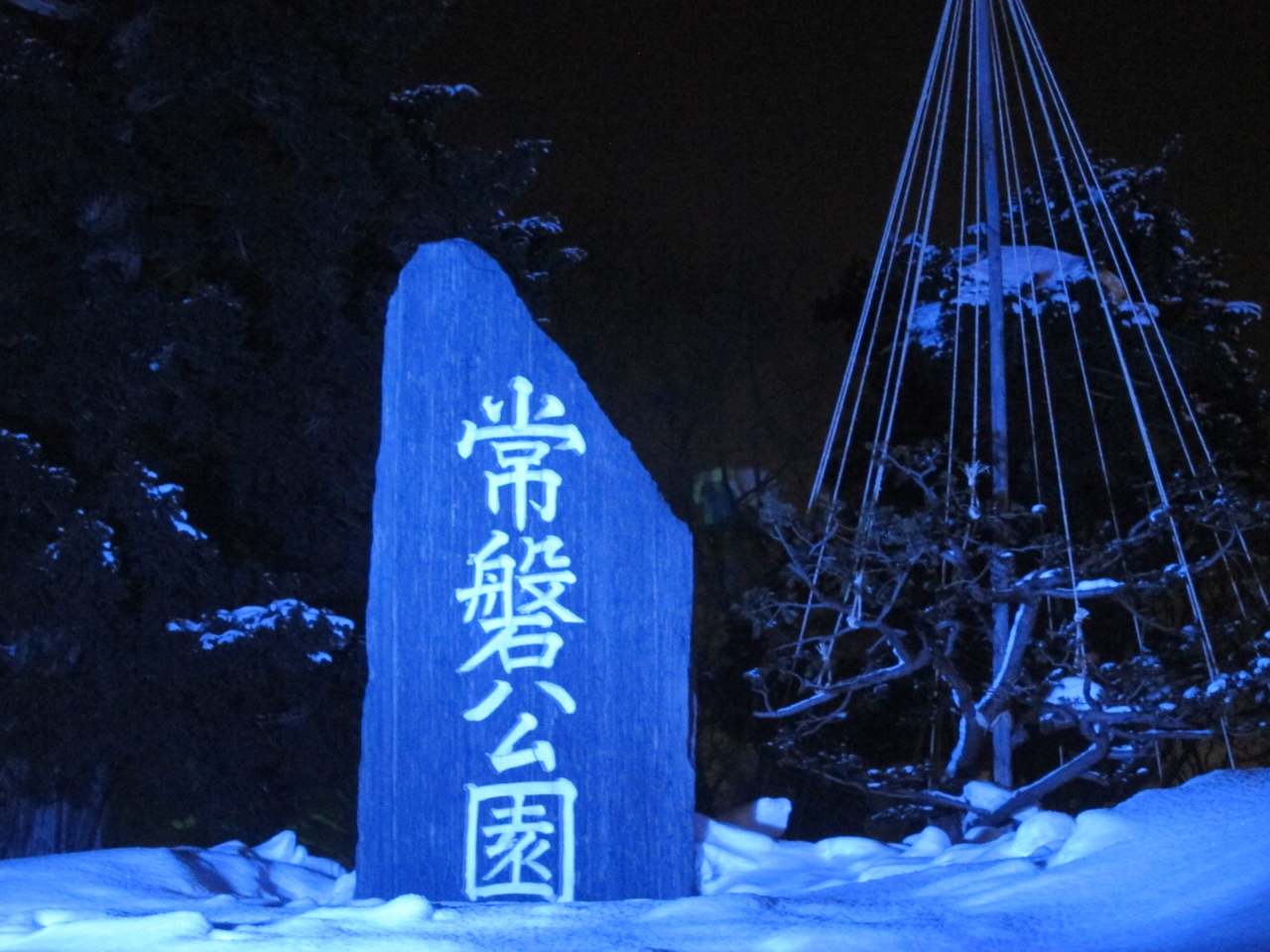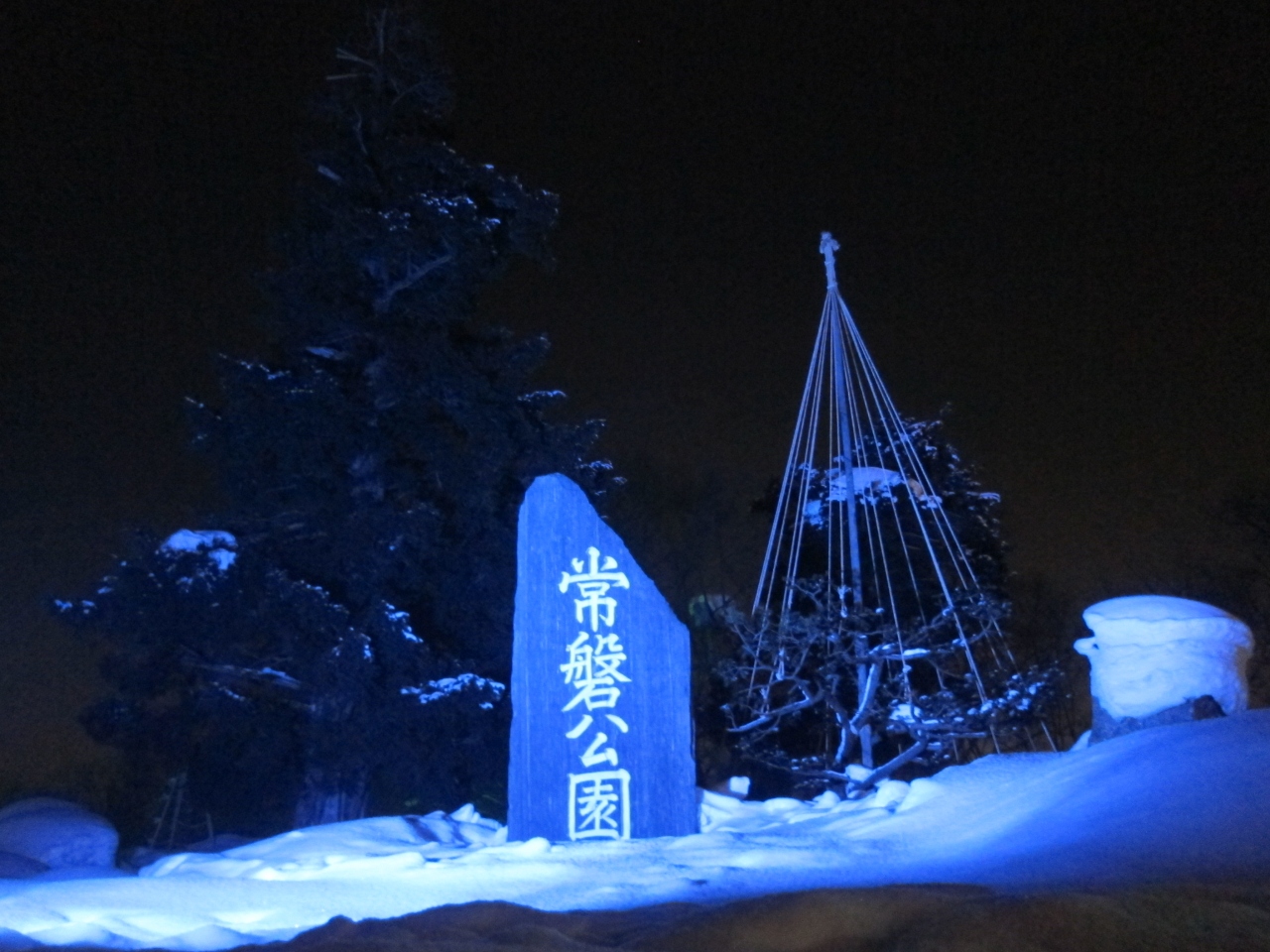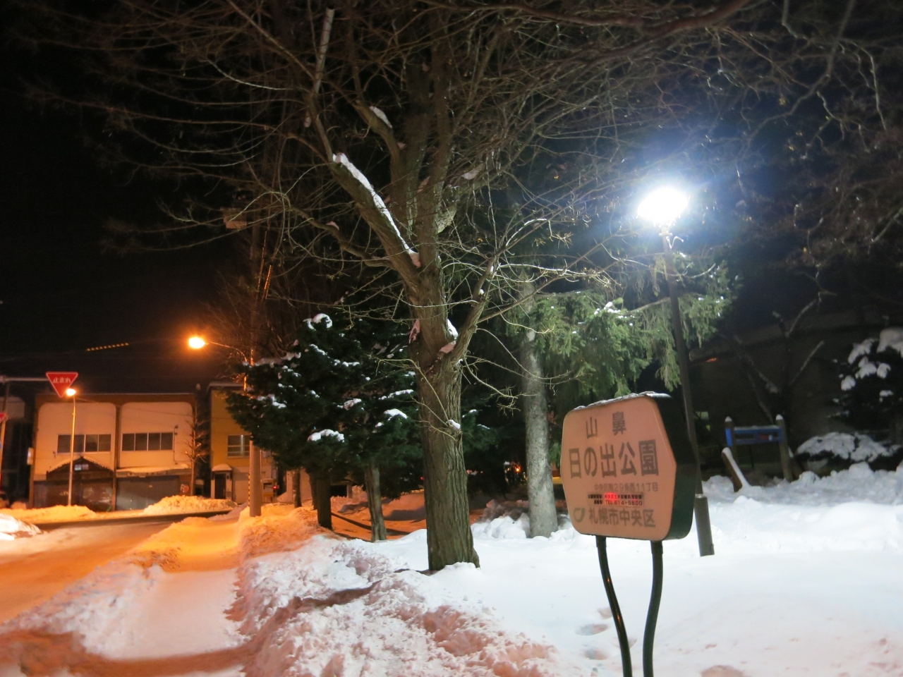 人で賑わう河川敷の冬まつり会場の裏で、公園内は暗く、通路以外は深々と一面雪に覆われ、ひっそりとしていました。ただ、会場から駅との近道に利用しやすく、ほのかに明るく飾られた通路だけは、ひっきりなしに人の往来がありました。