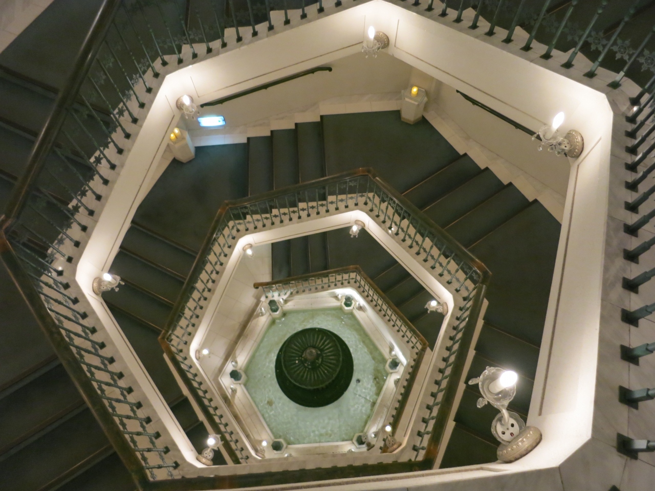 真ん中の塔まで行く横断歩道や信号はありません。展望台のようなものが見えますが、一般の人の立ち入りはできないようです。そして、夜になるとイルミネーションがきれいに輝いていました。電光掲示板が取り付けられていて、現在の時刻と気温が表示されていました。
