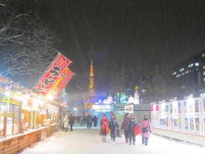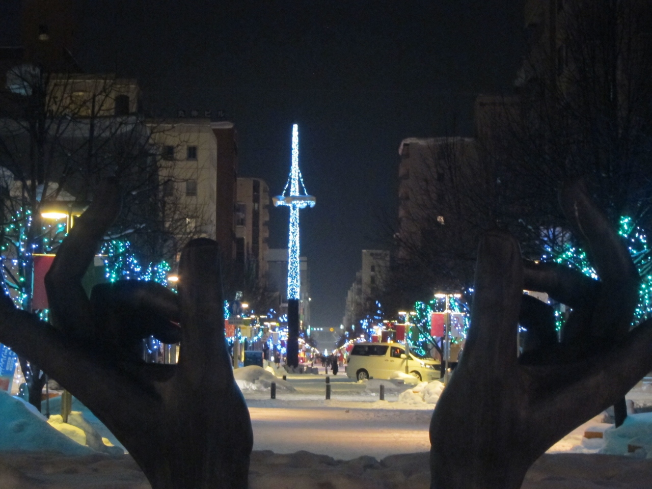 雪祭りの会場は大通公園の1丁目から12丁目。5~6km、北に離れた場所にある子どもの遊べるつどーむ会場や、街中に氷像があるすすきの会場などがありますが、どうしても大通公園のものが便利で雰囲気もあります。大通の4丁目はJR札幌駅からの地下通路「チカホ」を通って直通で行けるほか、地下鉄南北線や東西線の大通駅(東豊線の大通駅は地下でつながっているが、2丁目のあたり)もあり、賑やかです。