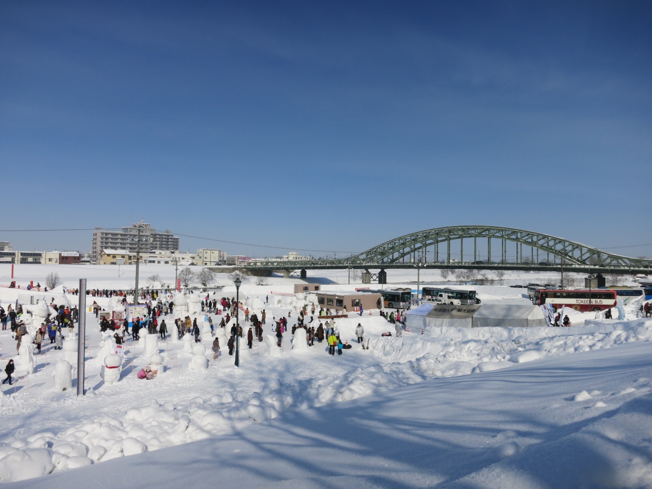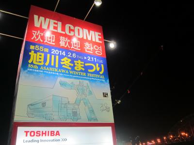 付近の河川敷では、ちょうど旭川冬まつりが開催されていて(2月6日~11日(2014年))、多くの家族連れなどで賑わっていました。- 旅行時期
