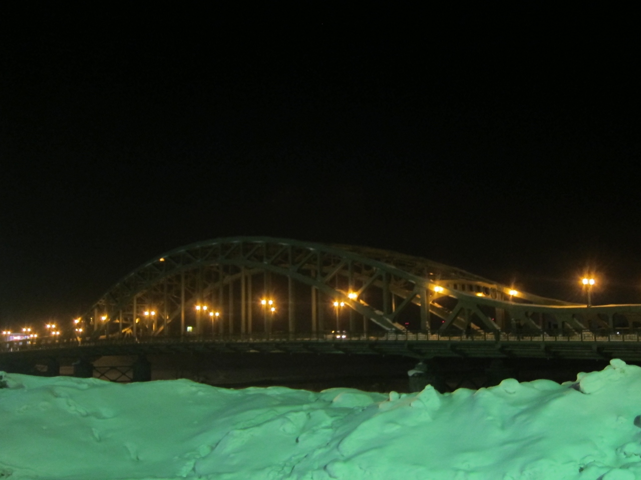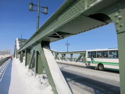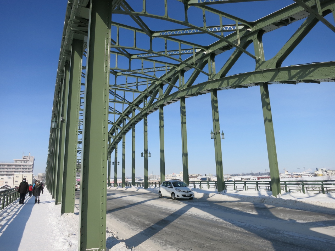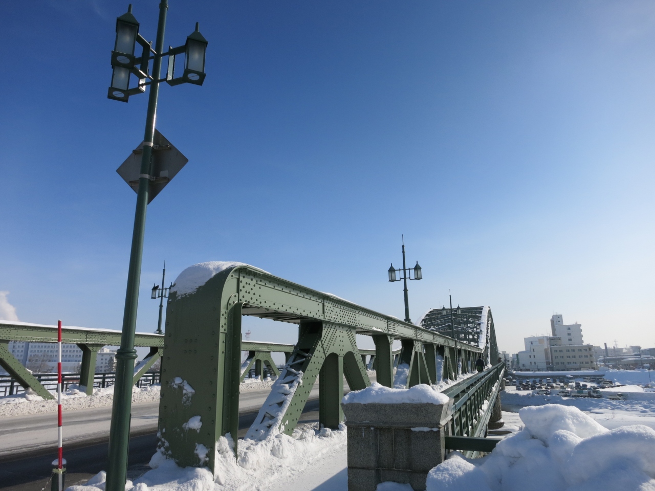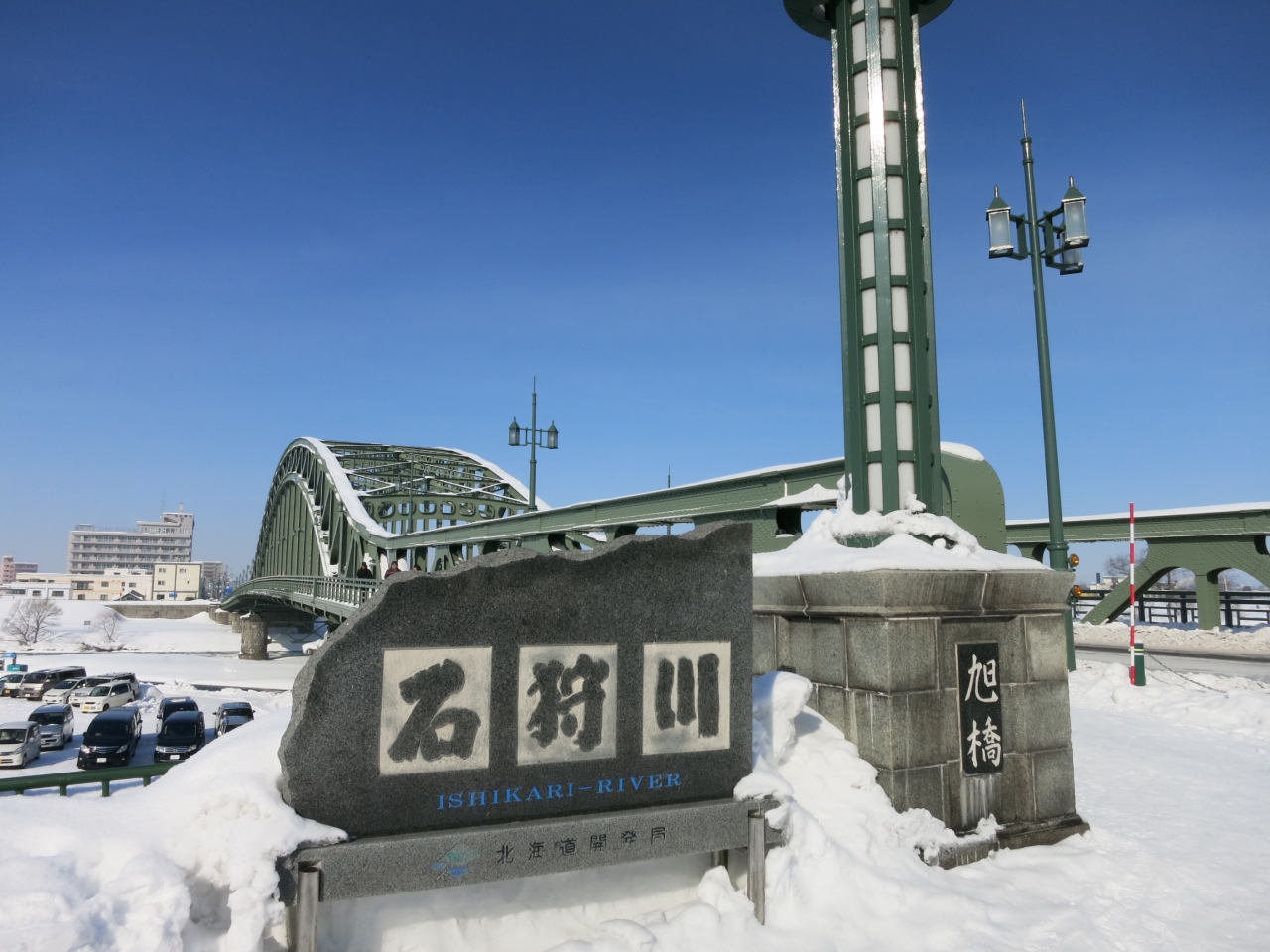 旭川駅前から北へ1.5kmほど離れた石狩川にかかる橋です。列車で旭川駅に着くと、南側に忠別川が流れていますが、こちら側ではありません。