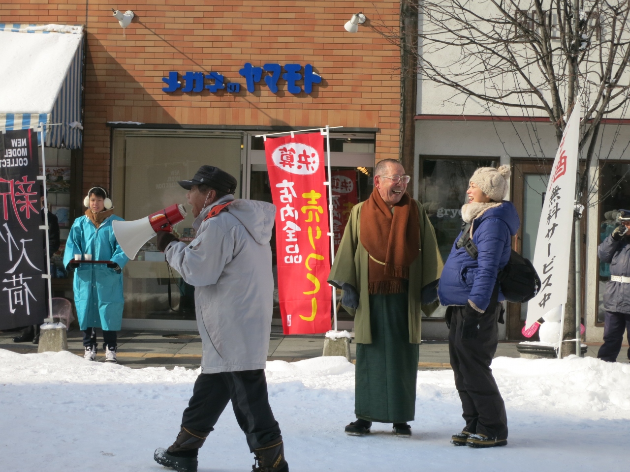 同大会の期間は、石狩川の河川敷で開催される旭川冬まつりとの期間が重複しています。平和通買物公園の終点の8条通のあたりから、旭橋のたもとにあるまつりの会場までは500mほど。昼間の時間帯であれば、会場からは旭川駅前までを往復する無料のシャトルバスも出ています。ついでに祭りにも足を伸ばしてみてもよいと思います。祭りでは期間中、毎日、夜の19時と20時の2回、「光と音のシンフォニー」というレーザー光と3Dマッピングの光のショーをやっていました。- 旅行時期