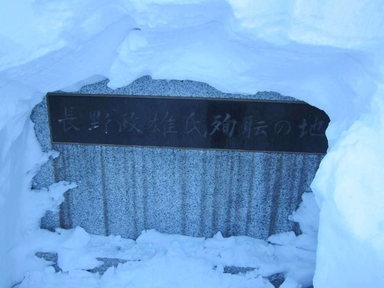 小説「塩狩峠」のモデルとなった実在の人物、長野政雄氏の顕彰碑です。塩狩駅を出て100mほど行ったユースホステル、塩狩ヒュッテの前の線路近くに建っています。冬に訪れましたが、周囲は深い雪に覆われていて、最初はどこにあるのか分かりませんでした。