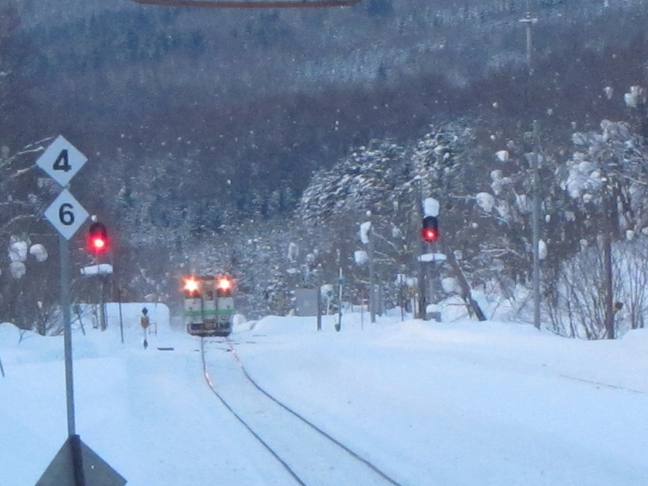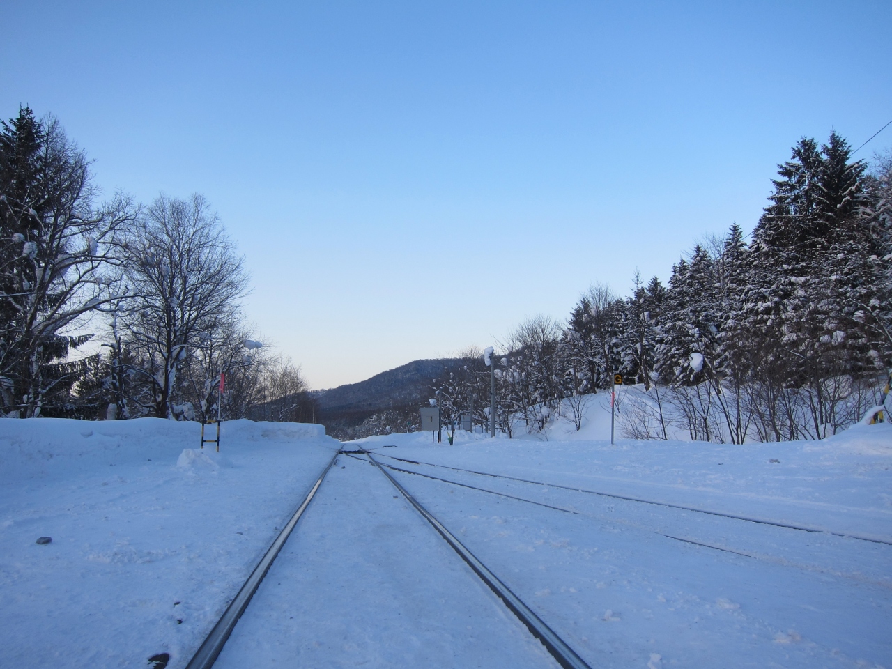 単線の宗谷本線にあって、駅は列車の交換も可能な複線になっています。ポイント部は電熱で温められているようで、雪が解かされており、周辺部は更に保線職員によりきれいに除雪されていました。