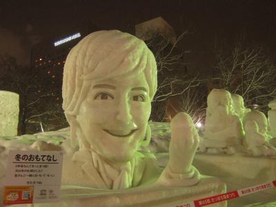 2014年の雪祭りは2月5日(水)~2月11日(火)まで開催されています。2月4日はリハーサル。夜は点灯試験が行われ、大通公園内の2方向に分けられた順路の道も片側だけ通れました。一部露店も営業していて、飲食もできました。そして、すいているうちに見ておこうという観光客で既に混雑。海外からの観光客も大勢いて、雪像の前で大声を挙げて記念写真など、既に本番気分です。