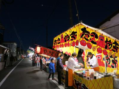 市は午後から20時ころまで。たこ焼きやたい焼き、お好み焼きなどの定番B級グルメの店もあります。