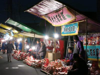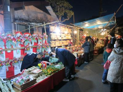 明るいうちはそれほどでもありませんでしたが、夕刻ともなると、地元の人などが訪れ、縁起物を買い求めていました。年の瀬のなかなか風情のある光景だと思います。