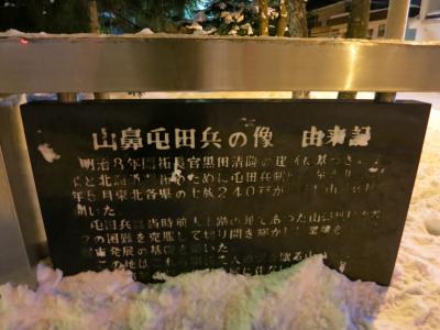 国道230号線の石山通沿いにある札幌南警察署の横にあります。明治初年、札幌の中でも、琴似や新琴似とともに、山鼻地区でも屯田兵の入植が行われ、苦難に満ちた開拓の業績をたたえ1967年に建てられたそうです。
