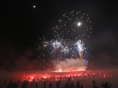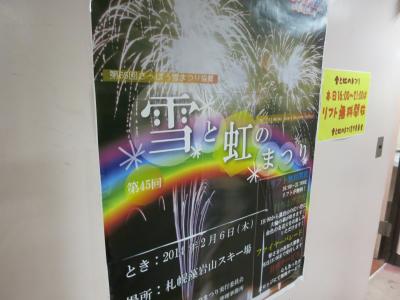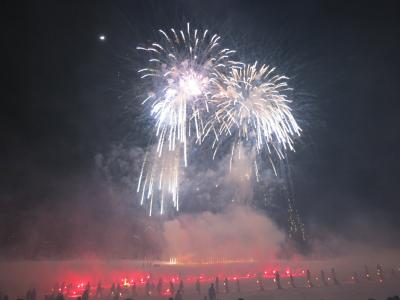 当日は藻岩山スキー場のナイターリフトが無料です。リフト乗り放題です。16時から(~21時)無料開放されます。18時30分からは甘酒が無料配布され、そして19時からは花火が上がり、ファイヤーパレードが行われます。花火をバックに松明を掲げたスキーヤーたちが山の上から下りてきます(スキーが滑れる状態ならパレードに参加できるようです)。この間、20分あまり。短い時間かもしれませんが、パレードの間はゲレンデの滑走はできず、リフトも止まっています。麓のロッジ付近で眺めるとよいと思います。