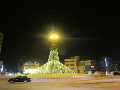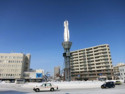 旭川の平和通買物公園の先、9条通と7丁目の通りにあたる国道40号線が交わる場所に大きなロータリーがあります。中央にはちょっと雰囲気が古いものの、近未来的な塔が建っています。雪と氷をイメージしているであろう、その色と形。雪晴れの青空に、尖塔が光を反射して輝いていました。初めてこの場所を訪れたときは、まるで旧満州の都市にでも来たという印象でした。