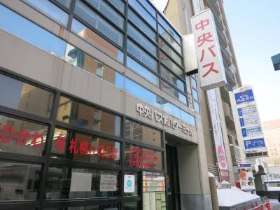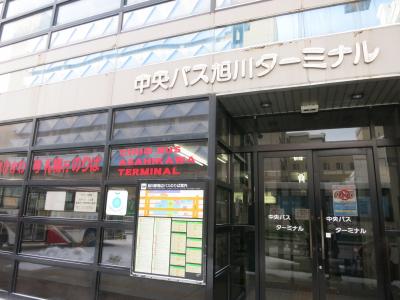 旭川駅の北口の西側の出口から、200mあまりの1条通に面した1条7丁目にあります。駅からは、駅前の宮下通と次の細い路地を越え、次にある1条通を少し左にずれた所です。比較的、駅に近い場所にあります。札幌までの高速バスも発着し、JR北海道の特急スーパーカムイの好敵手となっています。両者を比較するとこのような感じです。