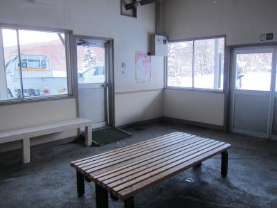 駅は無人駅ですが、待合室の隣は調理場などもある職員の待機室になっているようです。冬に訪れた時は、半袖の保線?職員が外にあるトイレに向かうのが見えました。おかげで、待合室の上に暖房の配管らしきものが通っており、余熱?で無暖房の待合室にいても、わずかに温かいような感じでした。