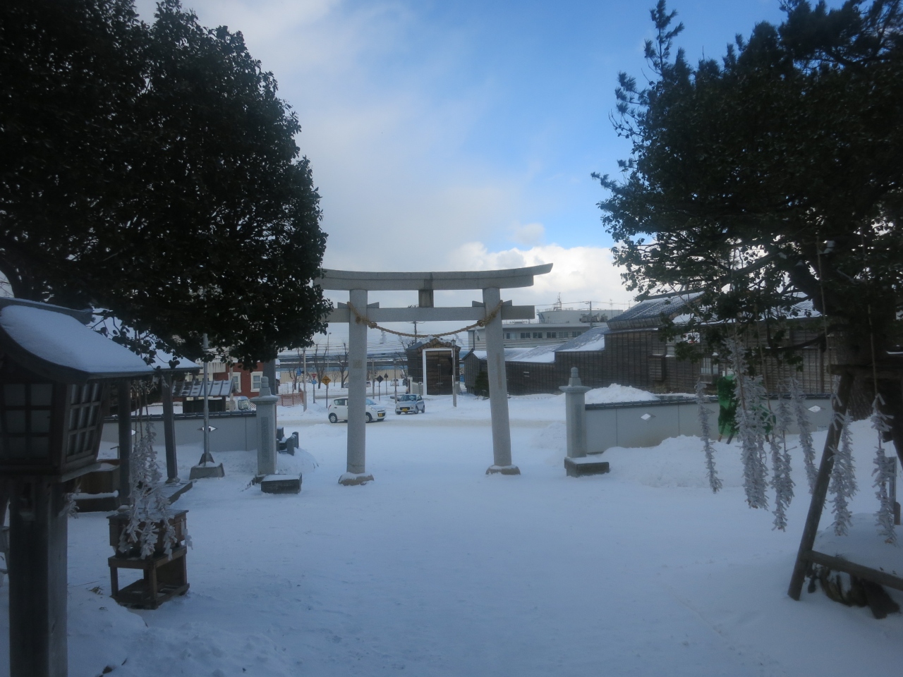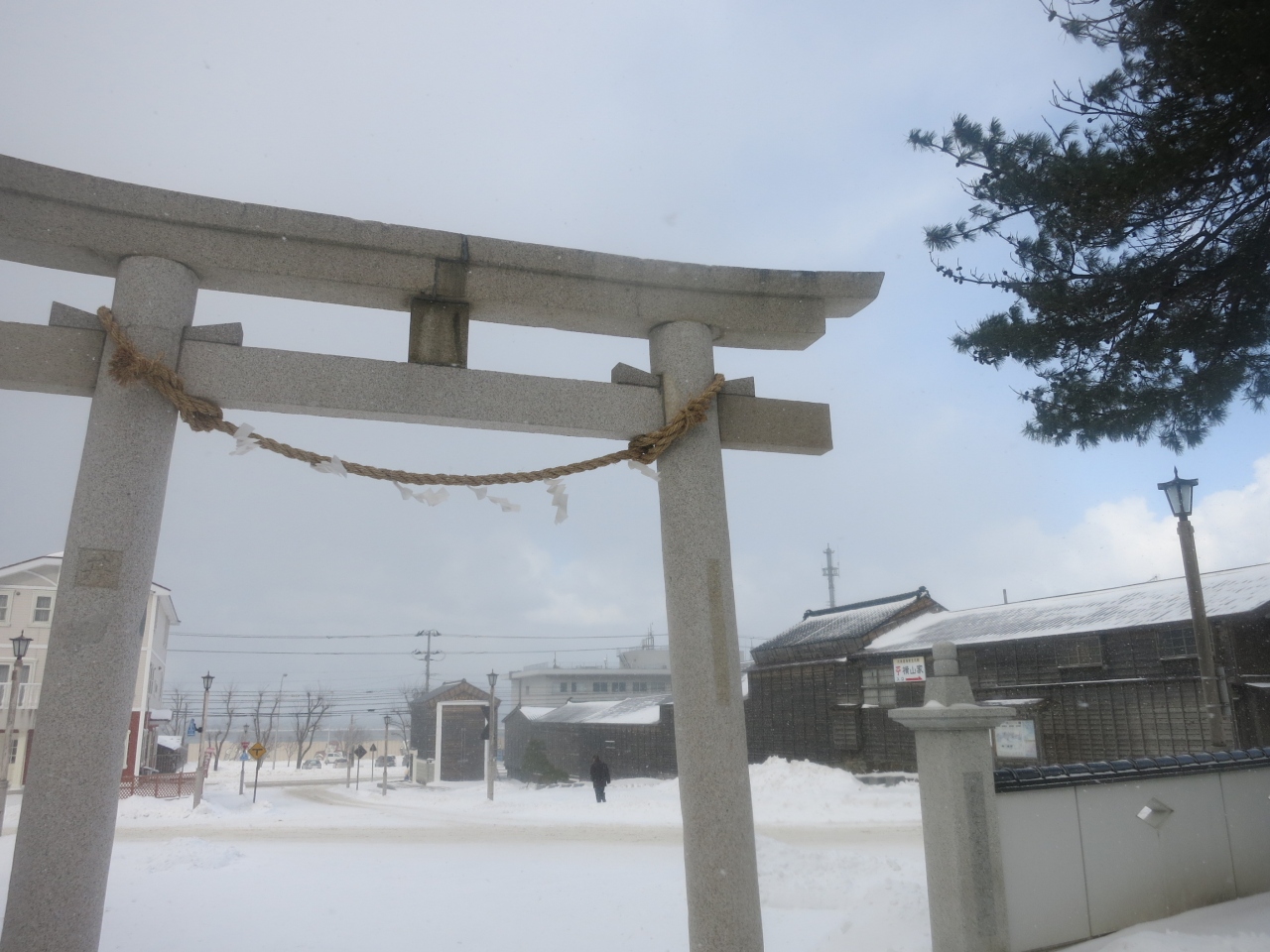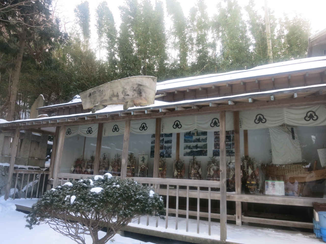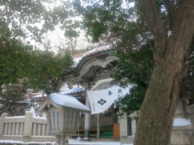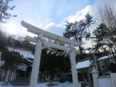 江差のいにしえ街道沿いにあり、鳥居の向こうに江差の浜も見える、海に近い場所に建っています。蝦夷一の宮ということですが(北海道神宮ではないのですね?)、境内は意外にも小さいものでした。山車が巡行する渡御祭りで有名ですが、祭りは8月。今回は季節が真逆の1月に訪れました。それでも鳥居をくぐると、右手に山車のミニチュアの並んだ模型山車館というのがあり、祭りの様子を伝えていました。ショーウィンドウのような感じで、外からいつでも眺めることができます。