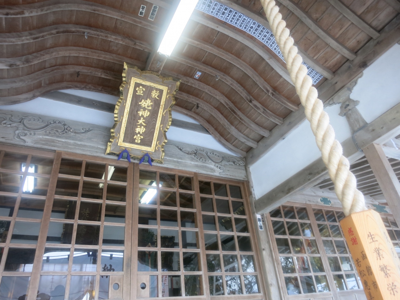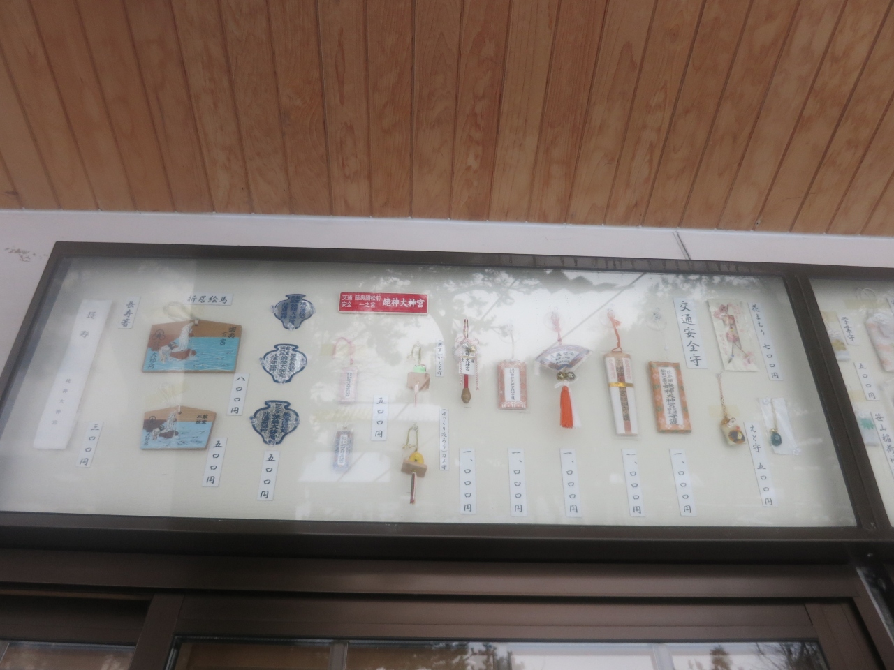 また、左手にはお札やお守り、絵馬などを販売する社務所もありました。ここの絵馬は蝦夷一の宮の銘があり、伝説の折居姥が群来をもたらす様子をあしらったものとなっています。- 旅行時期