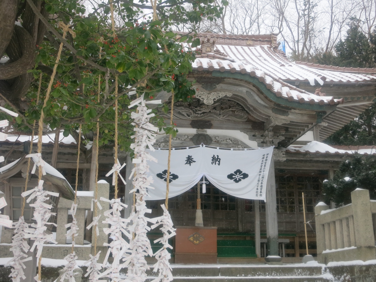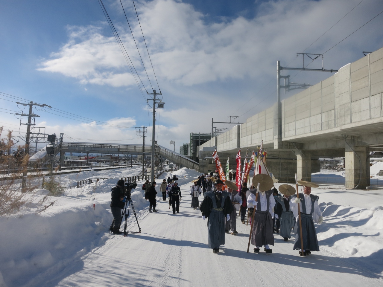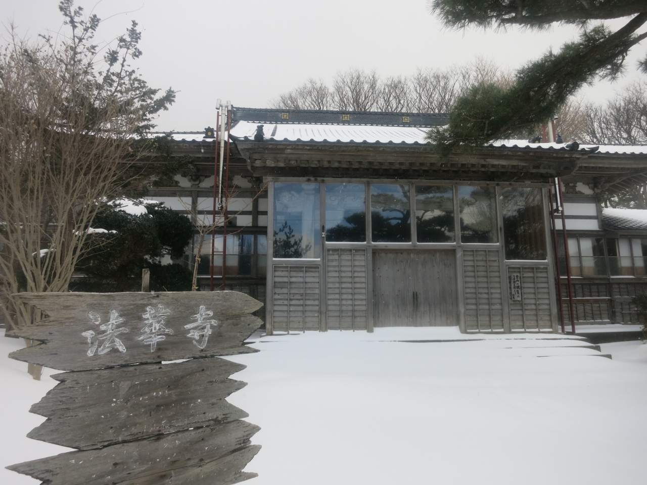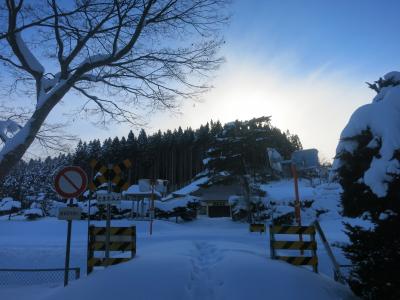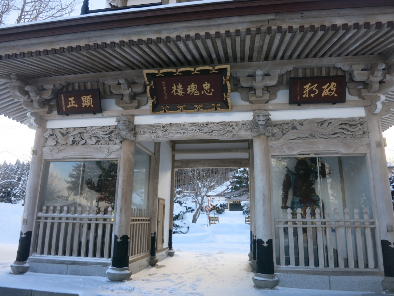 山門の隙間から見える列車は、駅を発車したばかり、または到着のため減速しているとはいえ、一瞬です。シャッターチャンスはわずか。更に、運行本数も少ないため、貴重な瞬間です。廃止される2014年5月に向けてカメラを構えた鉄道ファンなどが増えていきそうです。ただ、訪れた際には(2014年1月の、とある平日の午後)には、もう一人、訪れていた程度でした。線路は除雪されていたものの、踏切を渡る道には足跡もなく、腰まで埋まりそうな雪が、深々と積もっていました。- 旅行時期