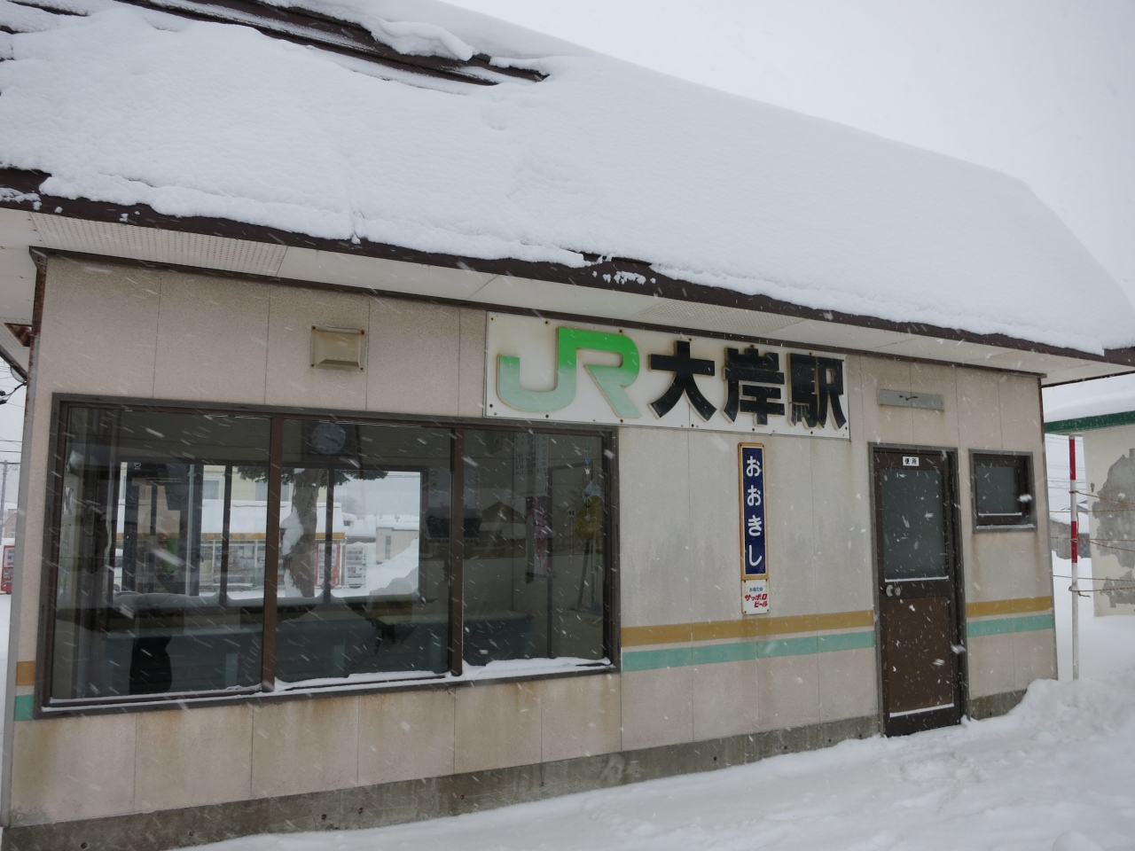 噴火湾に面した室蘭本線の駅です。駅から数十mのところが海岸線で、大岸漁港もすぐ近くです。