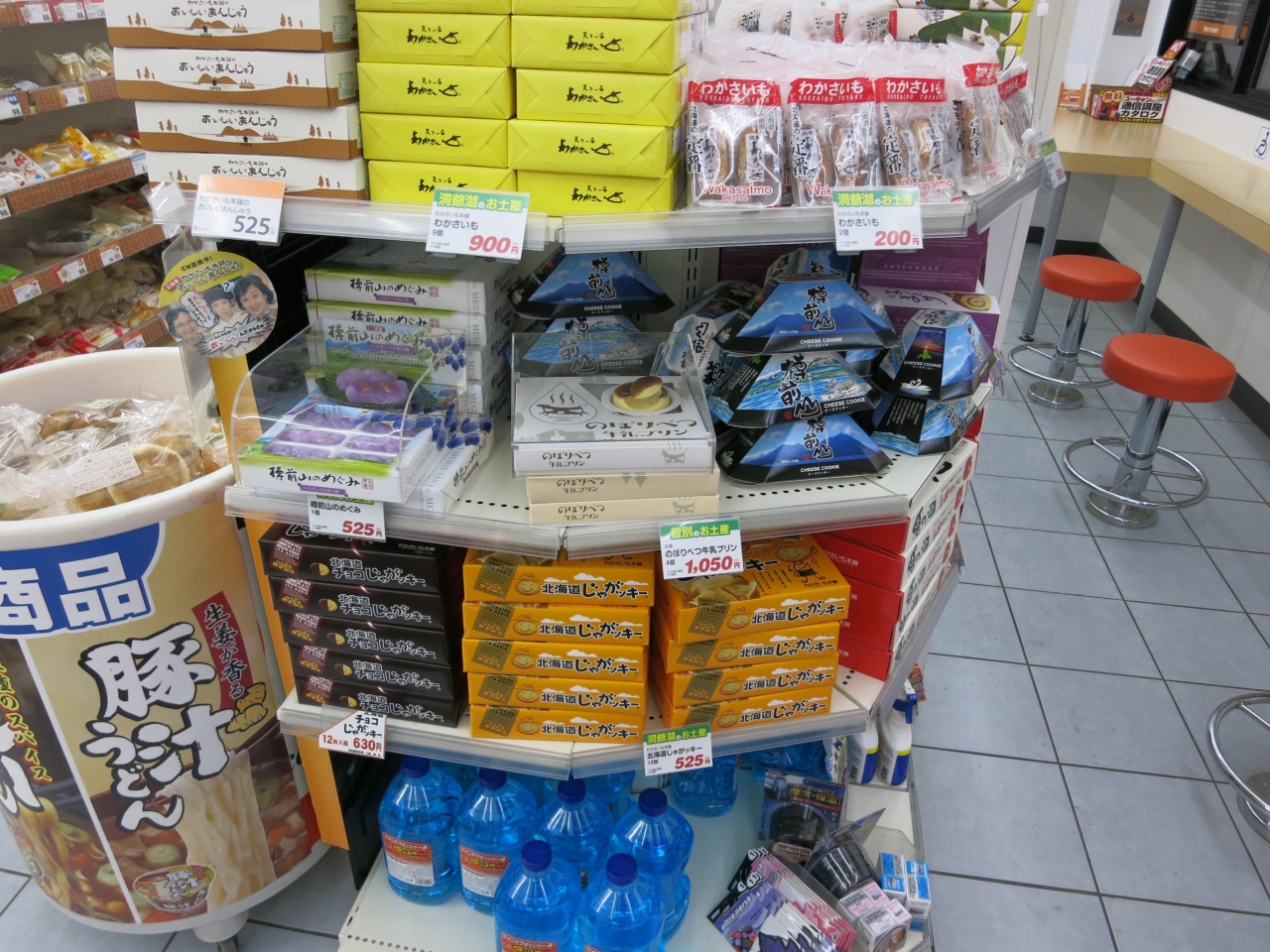 セイコーマートがあるので、便利です。24時間営業だそうで、お弁当から日用品まで揃っています。なお、少しですが、苫小牧やその周辺のお菓子のお土産なども販売していました(よいとまけ、わかさいも、じゃがッキー、樽前山のめぐみ、のぼりべつ牛乳プリンなど)。- 旅行時期