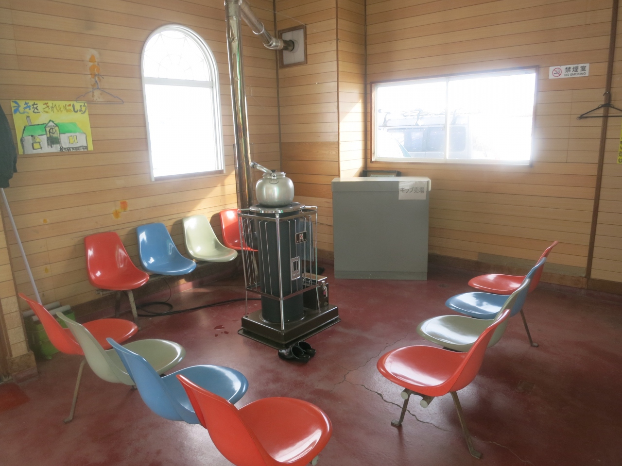 駅舎は深川市役所の納内支所を兼ねています。支所は平日の8時45分から17時15分まで開いていて(待合室はもう少し長い時間開いているようです)、各種手続きや地域のコミュニティーセンターとして活用されているようです。ただ、JRの駅としては無人駅で、切符は車内で整理券をとるなどして、下車する時または下車駅での支払いとなります。座布団の敷かれた椅子もある待合室には、わずかですが文庫本も置かれていました。