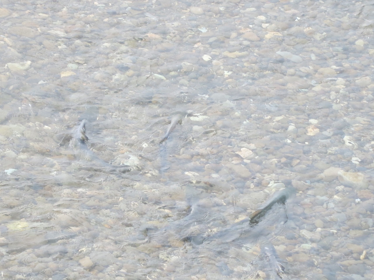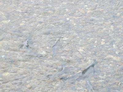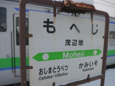 茂辺地の駅の手前、函館側に茂辺地川が流れています。車窓から見ても澄んでいて、きれいな川ですが、サケがよく上がってきます。こんな所でと思いますが、実はふ化場があり、小さいですが公園(さけ公園)も整備されています。線路よりも下流にあり、近くには歩行者専用のさけみ橋がかかっています。雪に覆われた1月に訪れたのに、本当にさけが泳いでいるのが橋の上から見えました(普通、北海道内は秋の9、10月ころが遡上の見ごろ)。江差線の橋梁とは500mくらいしか離れていないので、もしかしたら車窓からも見えるのかもしれませんが、普通列車でも一瞬で通過してしまうので、難しいと思います。