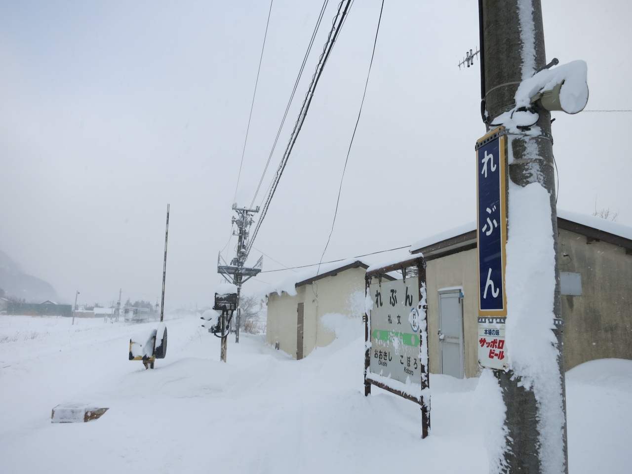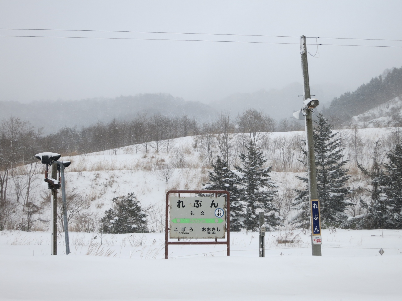 礼文の駅は、室蘭本線が、そのような地形の狭間にある礼文華川のほとりにでて、中ほどの礼文華の集落で停まる駅です。駅に停まるのは普通列車のみで特急は通過します。1日8往復の普通列車が停まりますが、その倍以上の貨物列車や特急列車が通過していきます。ある方向に行くのに、ひどい時には2時間待っても停車する列車が無い時間帯もあるので要注意です。