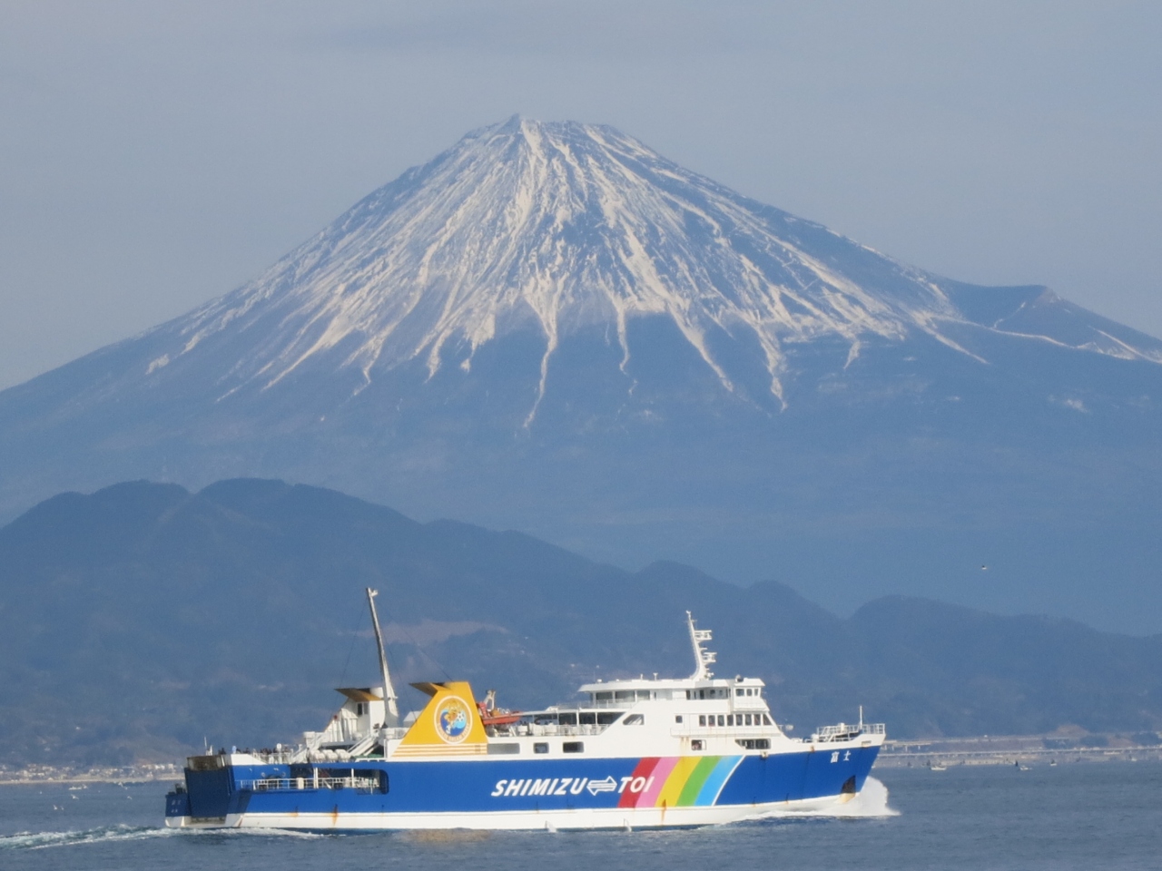 清水港の出入口にあたり、戸田行きのフェリーや貨物船、プレジャーボートなどの船が行きかっていました。