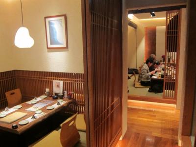 店内は和を演出した雰囲気で、お座敷では掘りごたつの個室が大小幾つかありました。靴をくつ箱に預けて上がるので、帰りに多数の靴で分からなくなることもないと思います。カウンター席もあり、開放感のある広めな作りとなっていました。