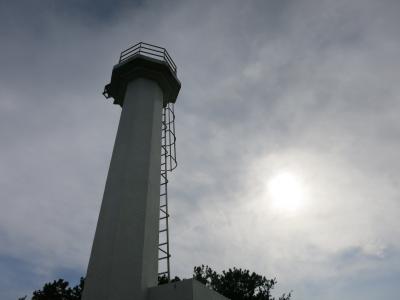 かもめ島の台地に上がったところにある灯台です。島の西側に広がる海岸線を見渡すことができます。知らなかったのですが、島の西側には千畳敷といった岩場が磯に広がり、意外にも雄大な光景を眺めることができます。台地の上には遊歩道も整備され、高いところから散歩しながら見下ろすことができます。