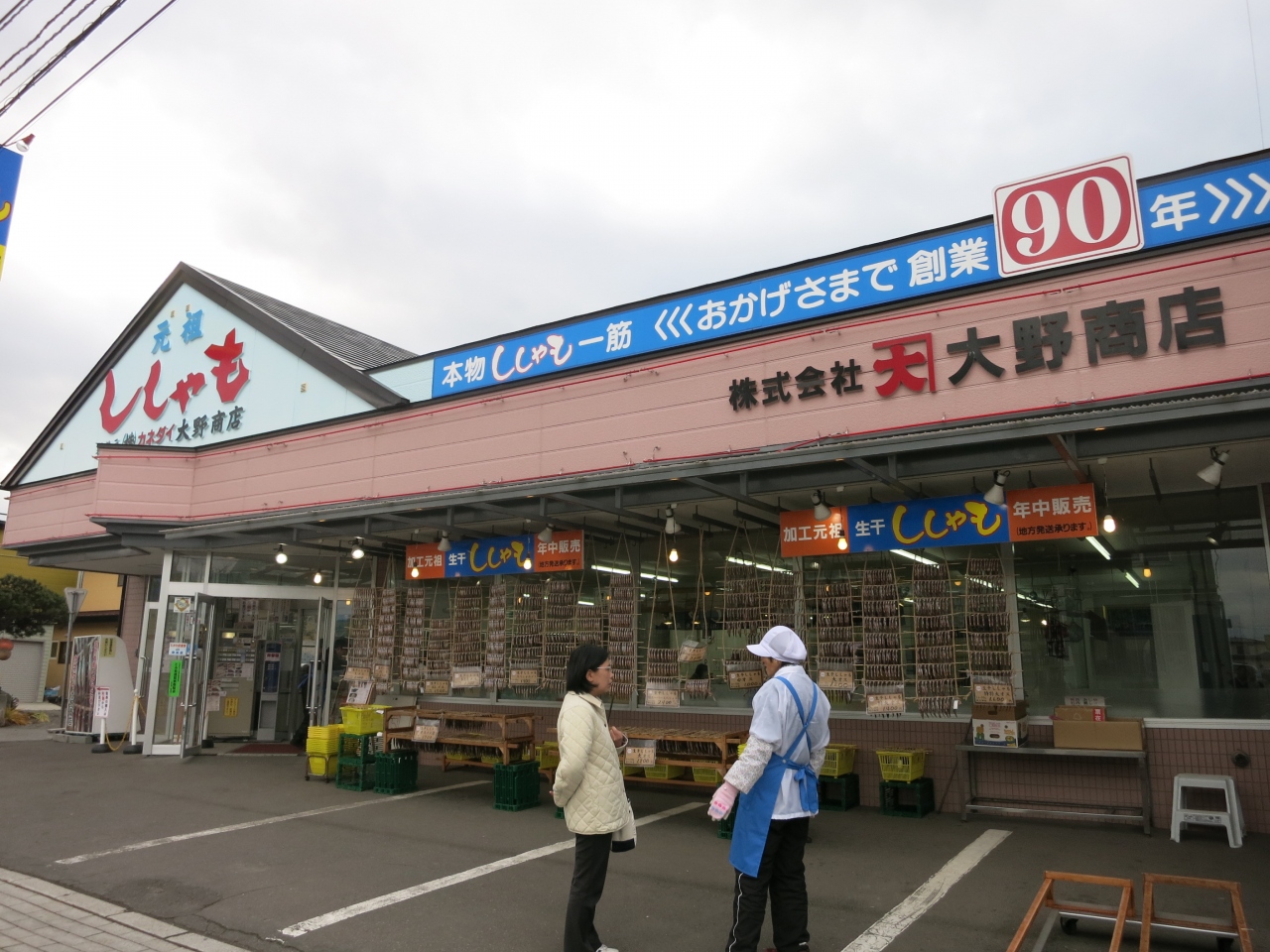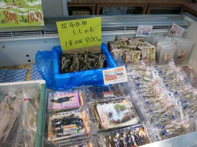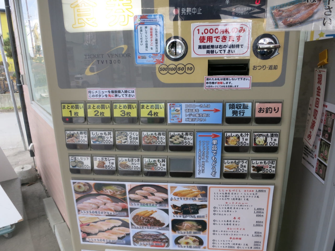入口のところで食券を買って注文しますが、店内にはおみやげ用の各種ししゃも製品が並んでいました。この時期限定だと思いますが、ししゃも寿司もお持ち帰り用にありました。各種クレジットカードも使えて便利です。