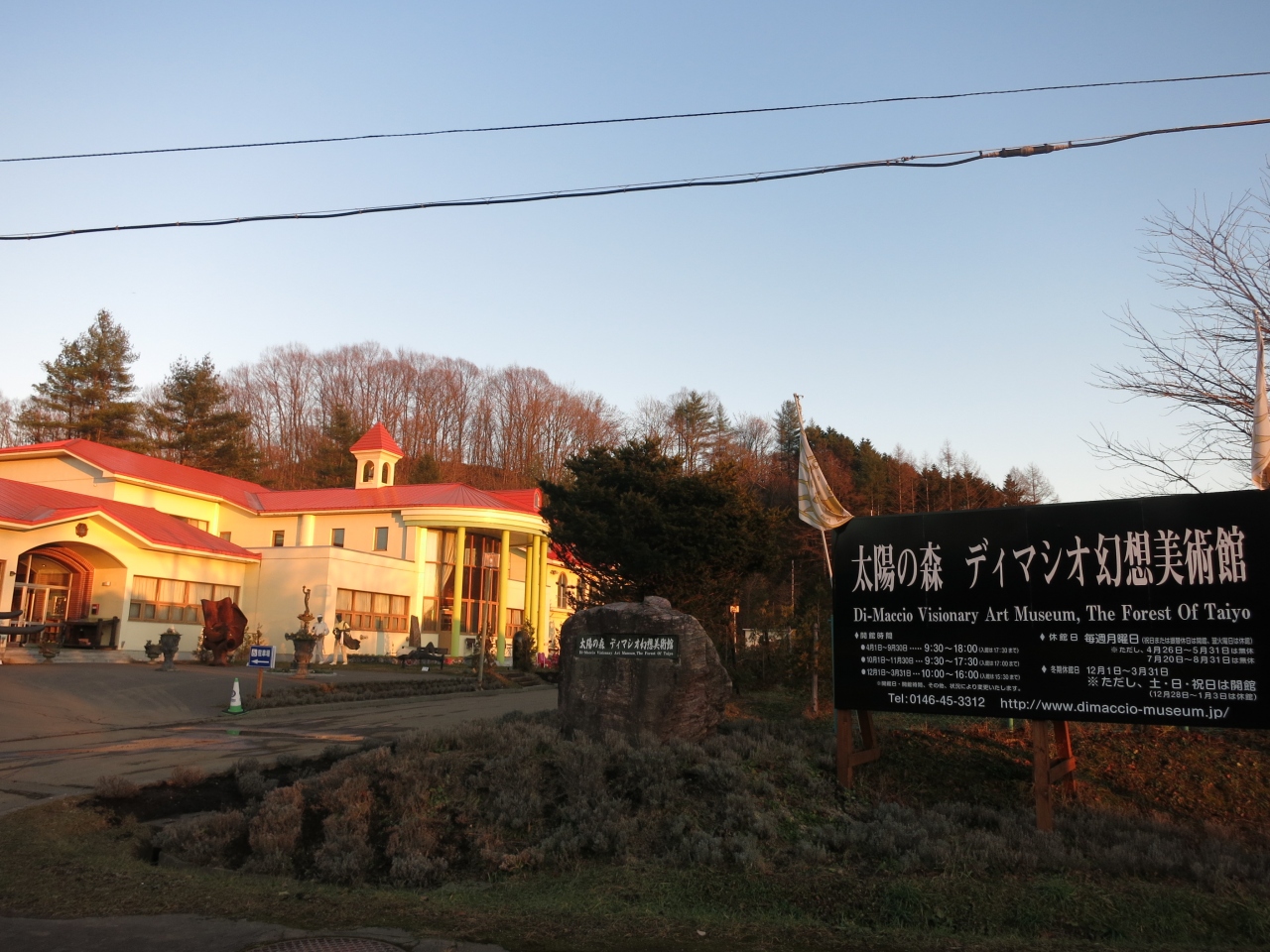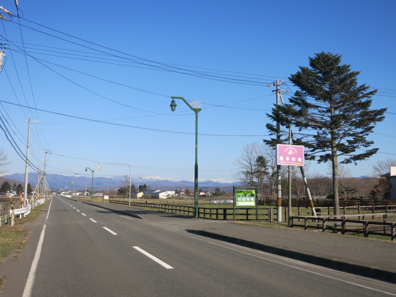 6丁目から先はサラブレット銀座からは外れますが、牧場は点在します。6丁目のあたりに太陽の森ディマシオ幻想美術館の案内板が立っていますが、20km先と、今まで来た距離の2倍ほど先を進まなくてはなりません。