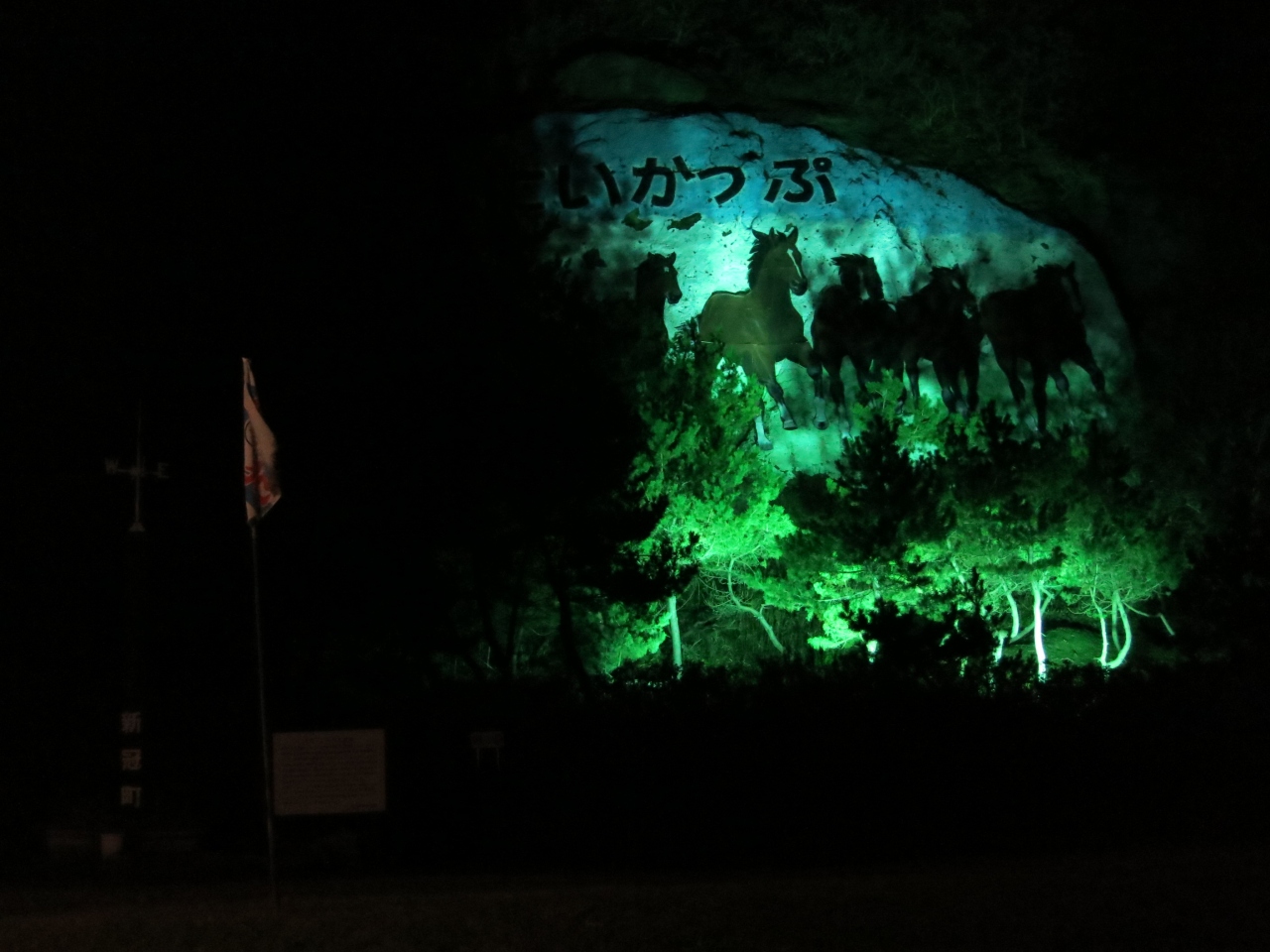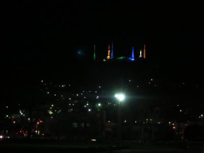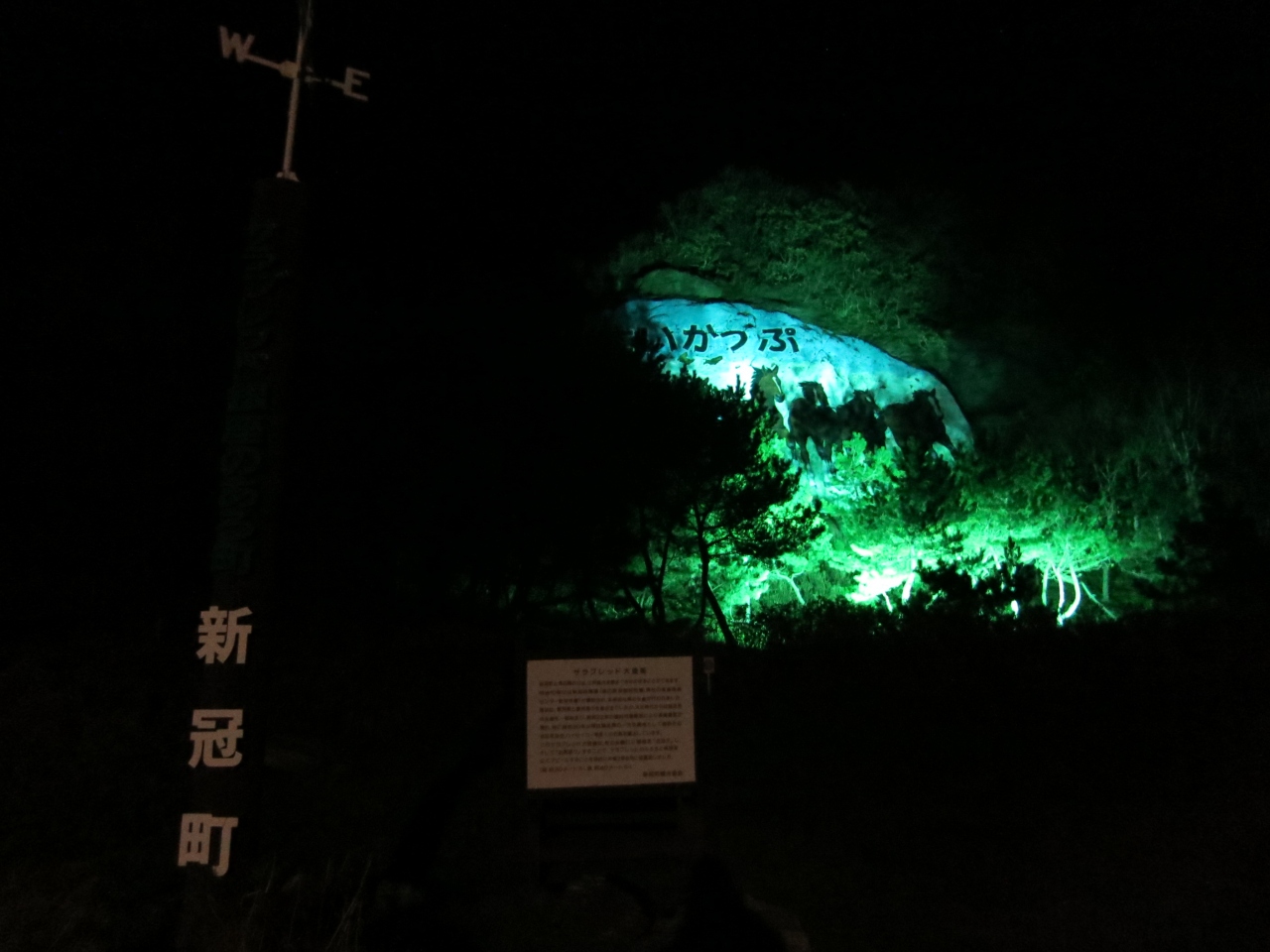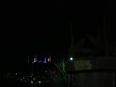 そして、たまたま夜に通りかかったところ、ライトアップされていました。ただ夜も、もう一息という感じです。光の当て方なのか、やはり木々に邪魔されているせいなのか。