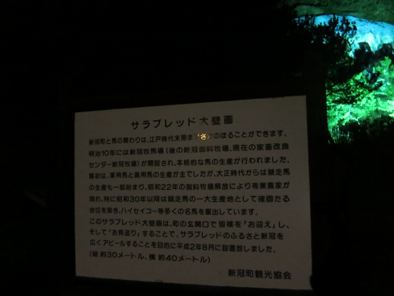 日高線も道路の横を通っているので、もしかしたら車窓からも壁画が見えるのかもしれません。このあたりは海沿いを走るので、特に夕日のころなど、海の方ばかりを気を取られていて、山側はあまり見たことないからです。